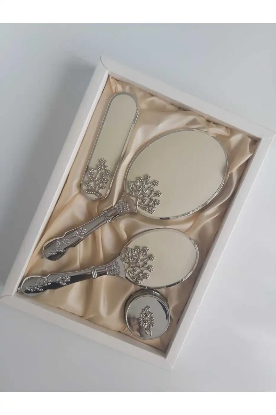 Зеркало украшено особой рамой, придающей ему винтажный вид. Расческа с тонкими зубцами и изящной структурой позволяет бережно ухаживать за волосами. Цвет слоновой кости прекрасно дополняет ваше свадебное платье, делая его идеальным завершающим штрихом для вашего особенного дня.