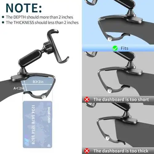 NADRQQE Ko‘p Funktsiyali Avtomobil Doshka Telefon Tutqichi 4-7 dyuymli smartfonlar uchun 360 daraja aylanuvchi universal doshka klipsli telefon tutqichidir. U bardoshli va chidamli ABS materialdan tayyorlangan va avtomobilingiz doshkasiga xavfsiz tarzda o'rnatiladi. 360 daraja aylanish funktsiyasi telefoningizni eng qulay ko'rish burchagiga sozlash imkonini beradi. Bundan tashqari, u telefoningizni tushish va tirnalishdan himoya qiladigan yumshoq silikon yostiqlarga ega. Oson o'rnatish va foydalanish bilan, bu telefon tutqichi sizga haydash paytida qo'llaringizni bo'shatishga yordam beradi.