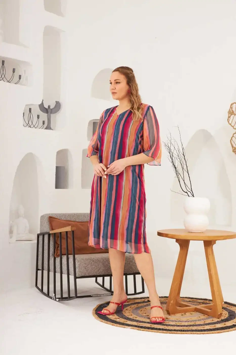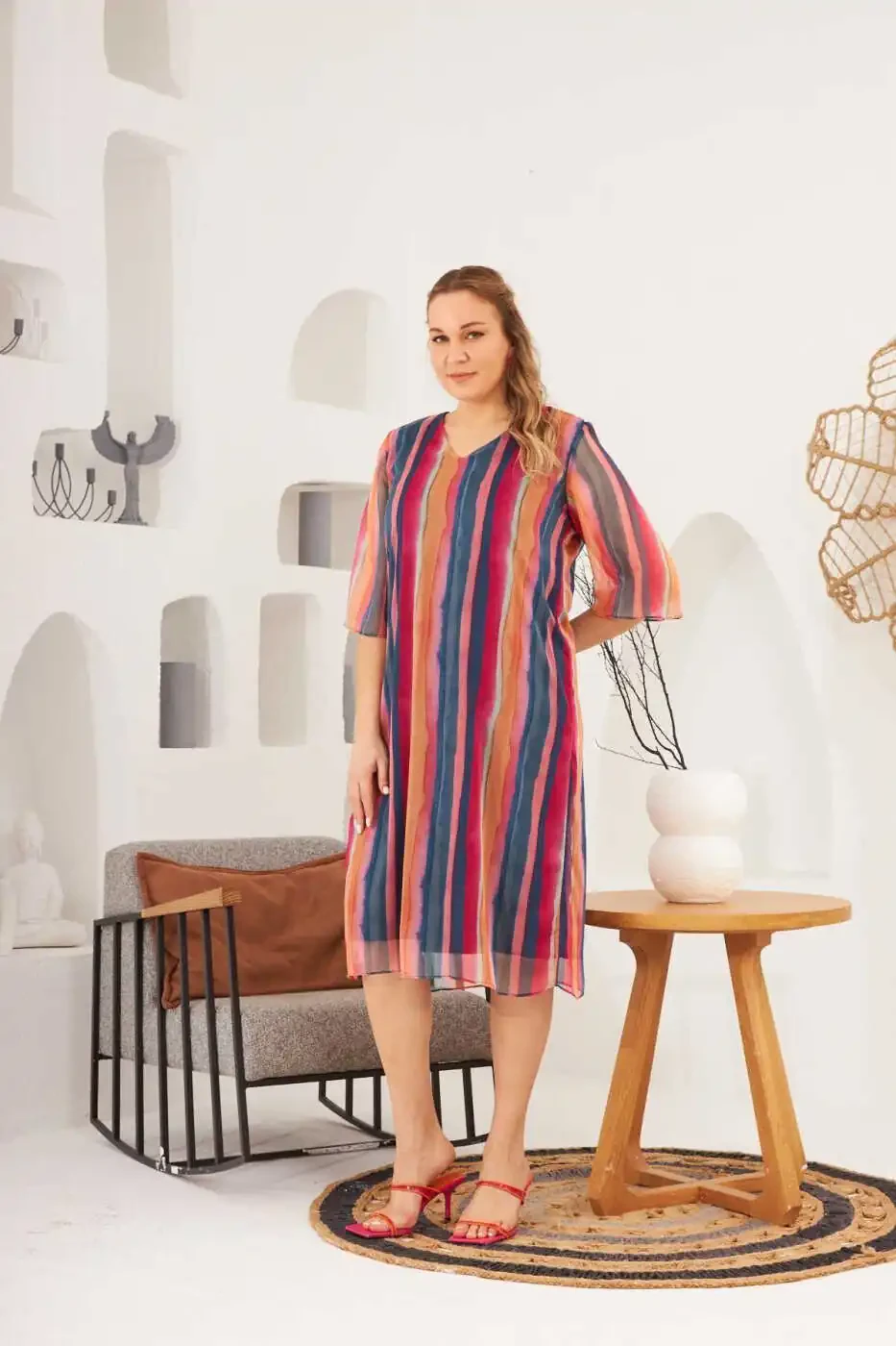 Katta o'lchamli ayollar uchun maxsus ishlab chiqilgan, nafislik va qulaylikni birlashtirgan, naqshli ko'k rangli shifon ko'ylak bilan tanishing. Ushbu ko'ylak sizga maxsus kunlaringizda ajoyib ko'rinish bag'ishlaydi, shuningdek, kundalik foydalanishda ham qulayligi bilan sizni maftun etadi.