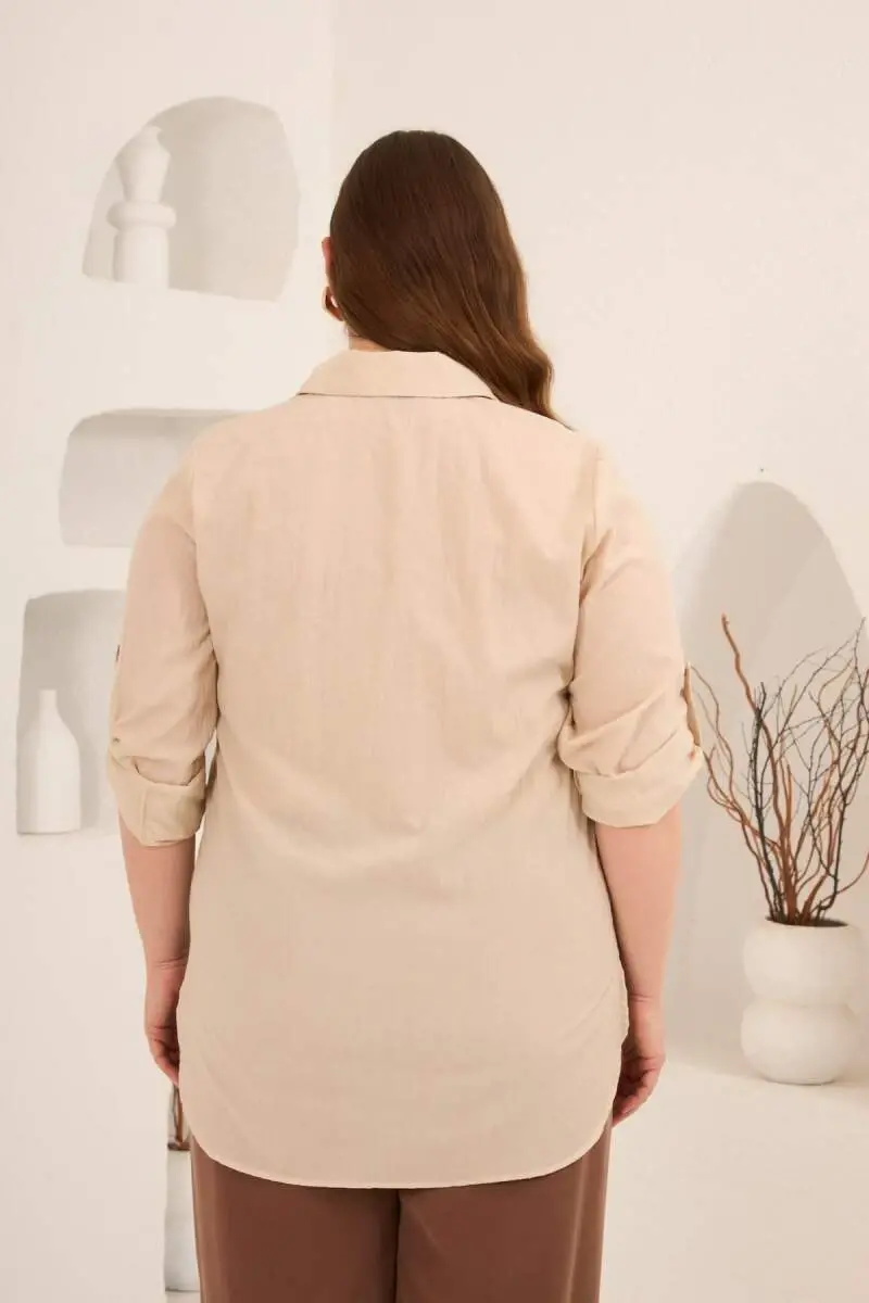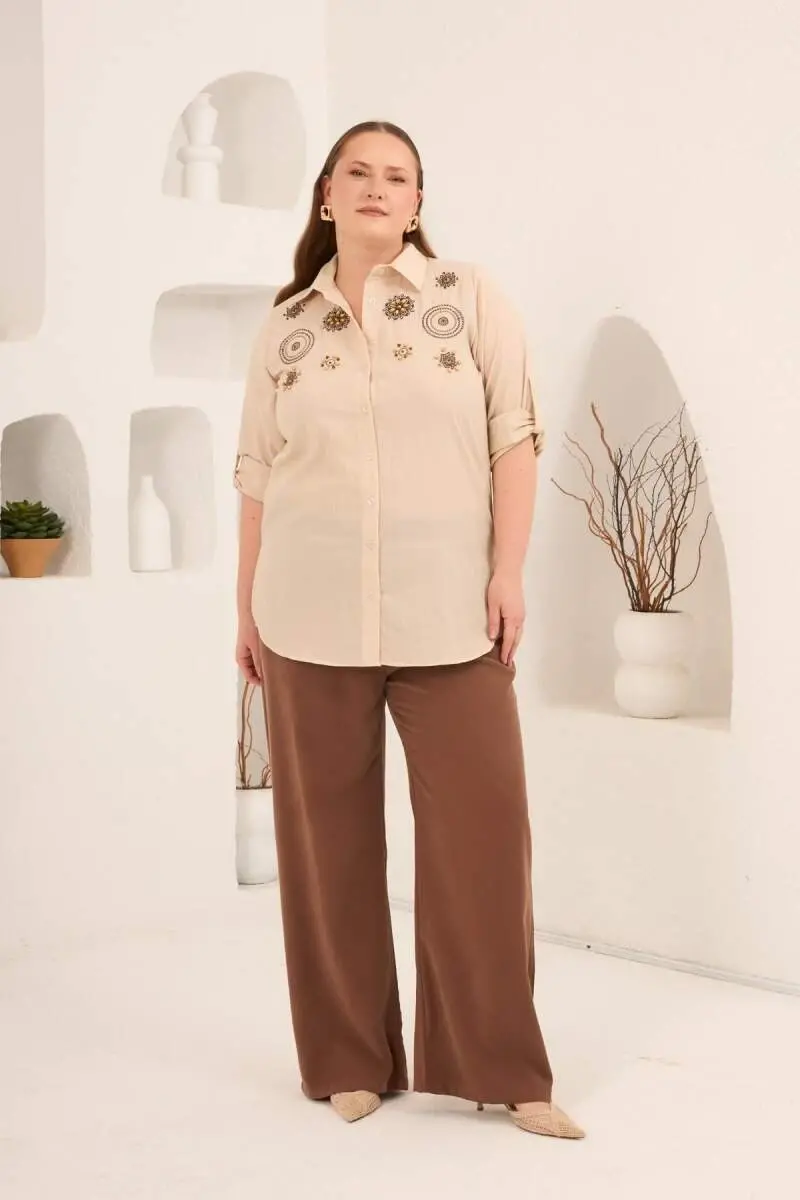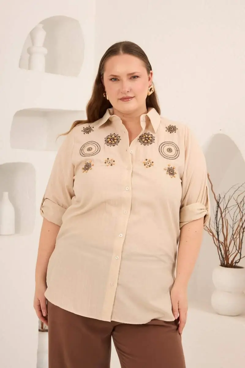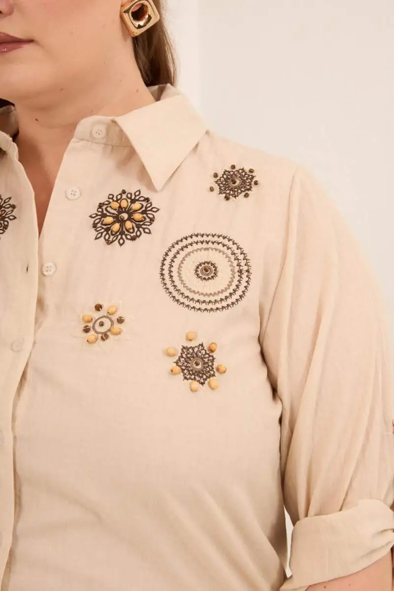 Nakış ve İşleme Detaylı Büyük Beden Gömlek Taş