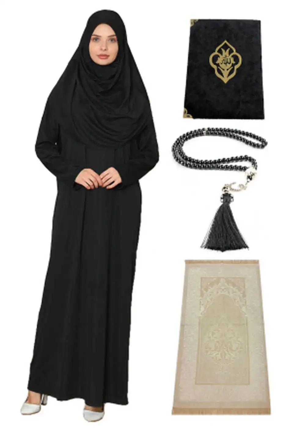 **Namoz to‘plami: nozik nafosat va maʼnaviyat uyg‘unligi**Nomozingizni osoyishtalik va qulaylikda ado etishingiz uchun maxsus ishlab chiqilgan ushbu namoz to‘plami, o‘zining nozik detallari va mahorati bilan sizga maʼnaviy tajriba baxsh etadi.**Kiyafet:**- Yumshoq va sarg‘uvchan matodan tayyorlangan, namoz davomida erkin harakat qilishingizni taʼminlaydi.- Nozik naqshlar va kashtalar kiyimning estetik qiyofasini to‘ldiradi.- Keng qirqimi, sizga ibodatlaringizni erkin bajarishingizga imkon beradi.**Sajjada:**- Sifatli plyush matodan tayyorlangan sajjada, namoz vaqtida tizzalaringiz va peshonangiz uchun yumshoq tayanch bo‘ladi.- Islomiy naqshlar bilan bezatilgan qirrasi, ibodat joyingizni vizual ravishda go‘zallaydi.- Yengil va ko‘chma dizayni, uni sayohatlaringizda ham osongina olib yurishingizga imkon beradi.**Inji tasbeh:**- 33 ta inji bilan bezatilgan tasbeh, zikr aytish va Allohni eslash uchun idealdir.- Inji donalarining silliq tuzilishi, qo‘lingizga ajoyib mos keladi.- Chiroyli sovg‘a qutisiga joylashtirilgan bo‘lib, yaqinlaringizga maʼnaviy sovg‘a sifatida berishingiz mumkin.**Yosin:**- Payg‘ambarimiz Muhammad (sav)ning ulug‘ ismi yozilgan Yosin, maʼnaviy osoyishtalik va baraka olib keladi.- Qatorli dizayni, oyatlarni osongina kuzatib borishingizni taʼminlaydi.- Ko‘chma o‘lchami tufayli, uni ibodatlaringizda har doim yoningizda saqlab turishingiz mumkin.Ushbu namoz to‘plami, sizning maʼnaviy ehtiyojlaringizni qondirishga qaratilgan bo‘lib, namozlaringizni osoyishtalik va xotirjamlikda ado etishingizni taʼminlaydi.