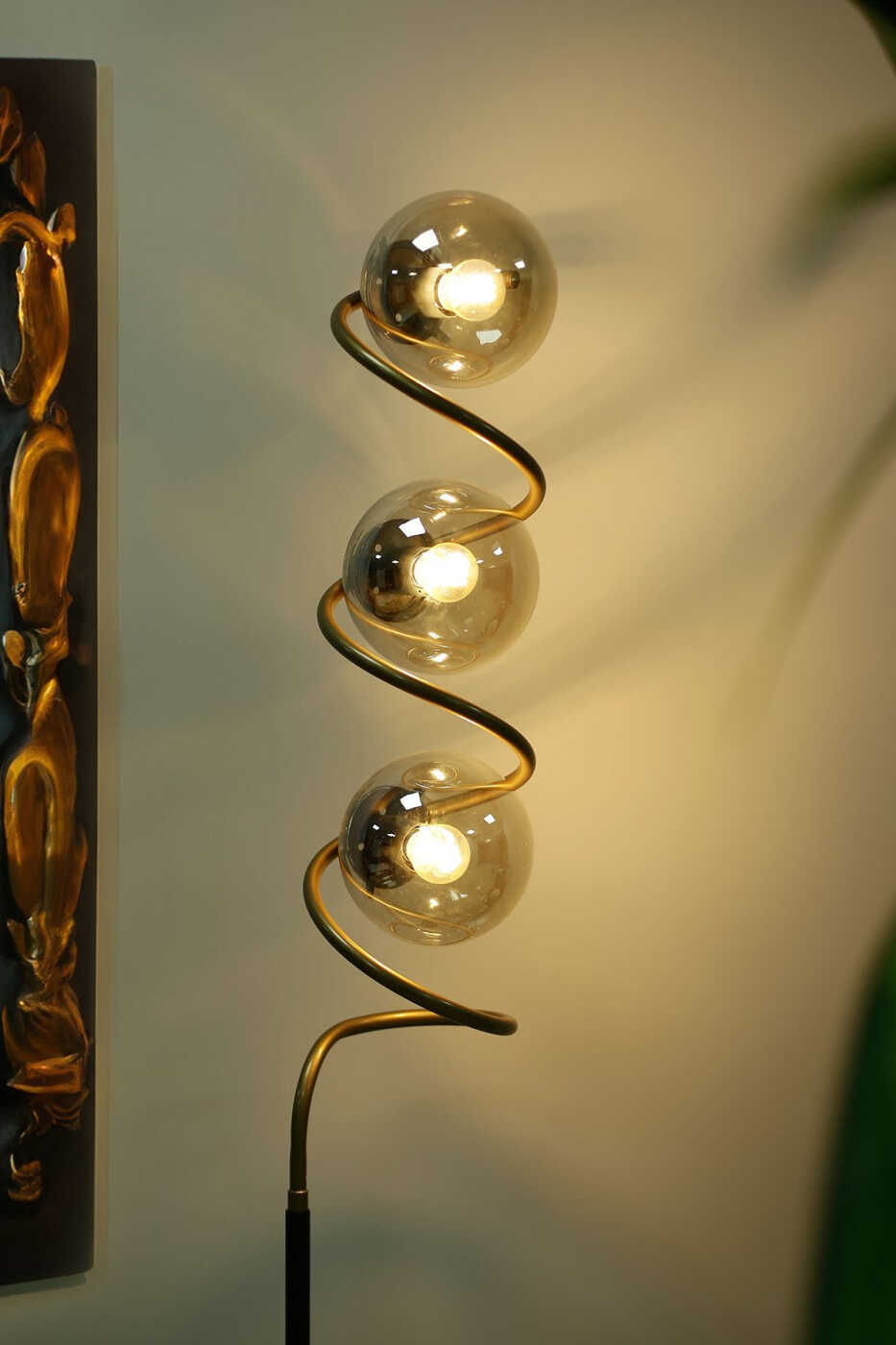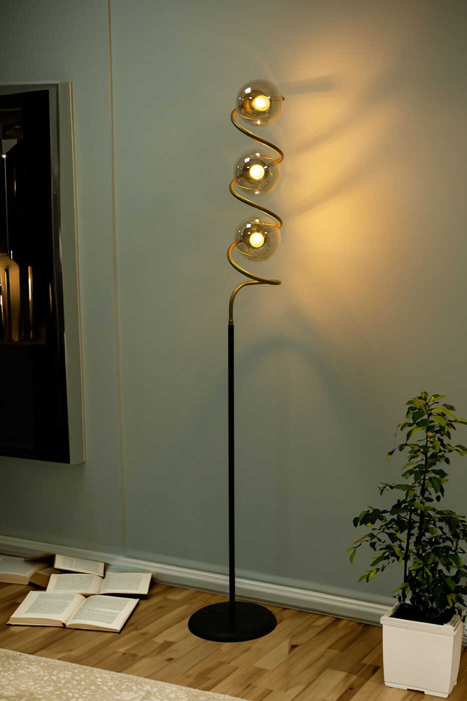 Напольный светильник Vista с черным металлическим основанием на одной ножке с деталями из матового золота