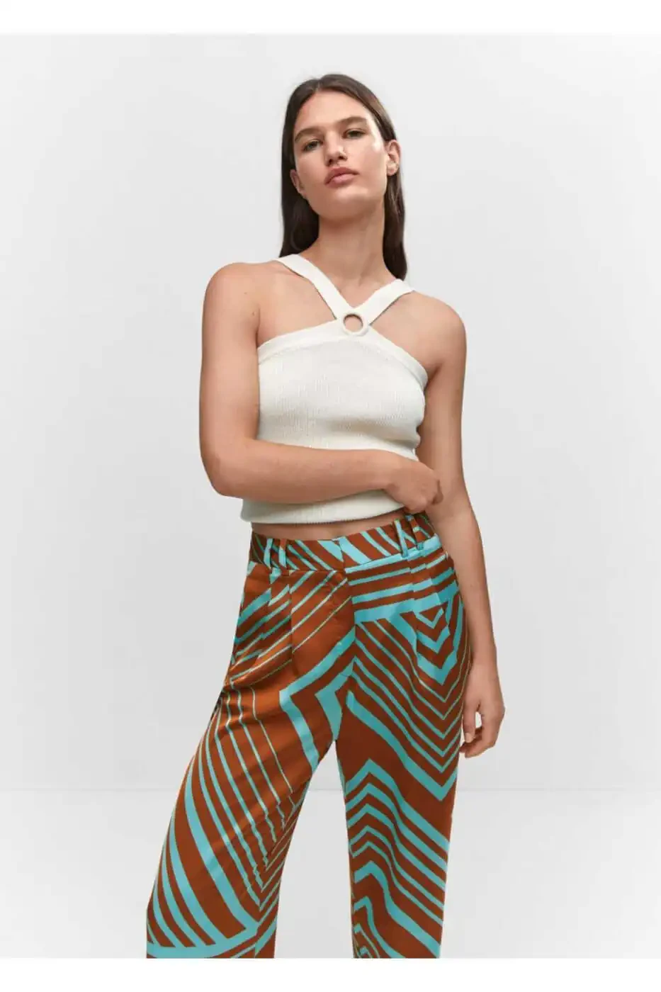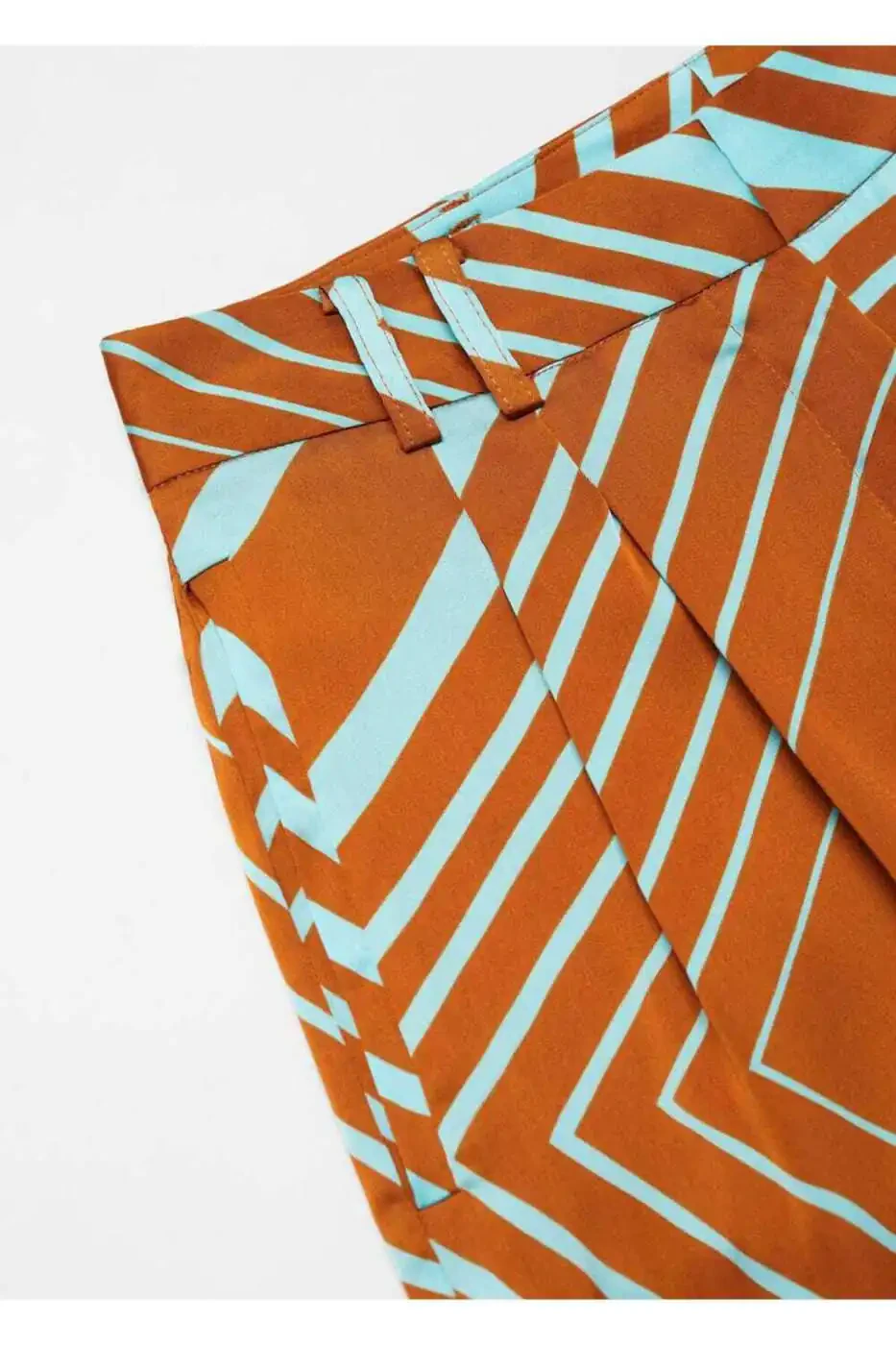 Trendyol tomonidan yuboriladigan ushbu naqshli atlas shimlar o'zining geometrik naqshlari va oqimli matolari bilan e'tiborni tortadi. To'g'ri dizayni, odatiy beliga ega va yashirin tugma, ilgak va fermuar yopqichi bilan nafis bir ko'rinish takdim etadi. Kamar uchun mo'ljallangan joylari va ikkita yon tomonidagi cho'ntaklari bilan shimlarning burmali detallari uni partiyalar va maxsus kunlar uchun a'lo tanlovga aylantiradi. 100% poliester matodan tayyorlangan va 100% poliester astarli shimlarning ichki oyoq o'lchami 80,7 sm va yon tikuv uzunligi 115 sm. Mashinada maksimal 30°C da yuvish mumkin, oqartirgichlardan foydalanilmasligi kerak, maksimal 110°C da dazmollash mumkin, quruq tozalash mumkin emas va quritish mashinasida quritilmasligi kerak.