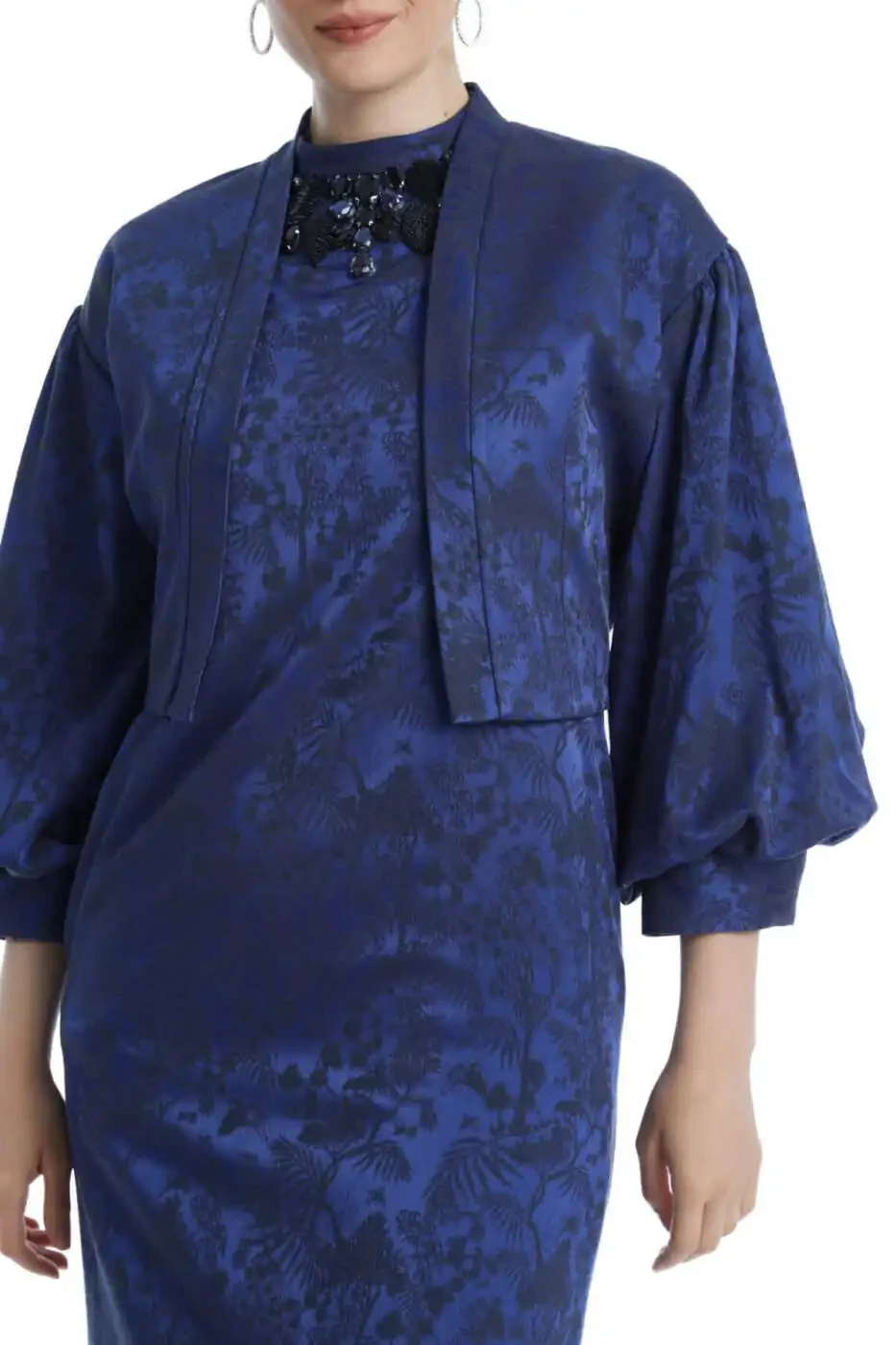 naqshli brokar mato, tosh ishlangan, moxovli, midi uzunlikdagi, saks kurti, koʻylak jamoasi, hashamatli, taklifnoma, maxsus kun, Serpil Exclusive