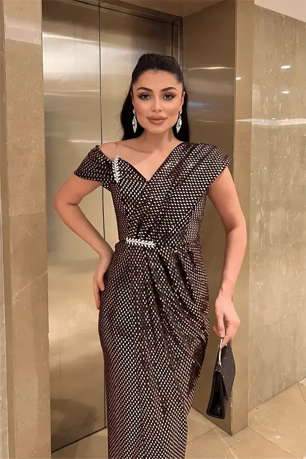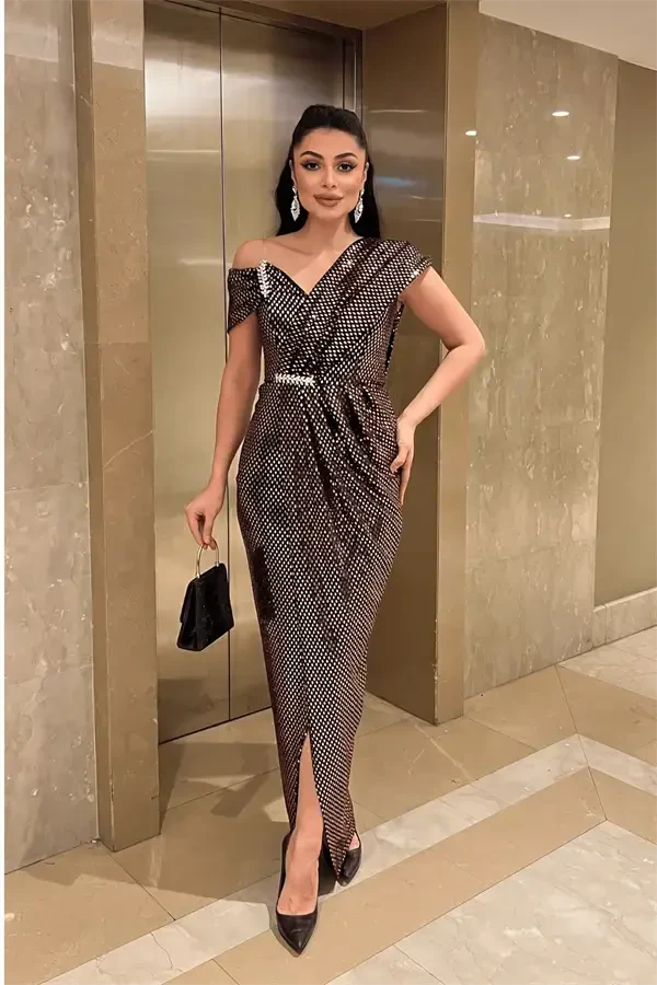 Ko'zni qamashtiruvchi ziyofatlar va maxsus kechalarning ajralmas qismiga aylanadigan naqshli payetli matodan tikilgan libos - BRONZA bilan o'z jozibangizni namoyish eting! Bronza rangining iliqligi va payetlarning jozibali yorqinligi bu libosni san'at asariga aylantiradi. Har bir qadamda e'tiborni jalb qiladigan ushbu maxsus dizayn nafislik va go'zallikni birlashtiradi. Libosning diqqatga sazovor naqshi payetlarning harakatlanuvchi yorqinligi bilan birlashib, betakror vizual bayramni yaratadi. Yelkadan etak uchigacha bo'lgan 140 sm uzunlikdagi mukammal bichimi tana chiziqlarini nafis tarzda ochib beradi, shu bilan birga harakat erkinligingizni cheklamaydi (o'lchamlarda 1-3 sm farq bo'lishi mumkinligini unutmang). Yuqori sifatli payet matosi yorug'likni mukammal tarzda aks ettirib, har qanday muhitda ko'zni qamashtiruvchi ko'rinishni ta'minlaydi. Libosning orqa qismida joylashgan yashirin fermuar kiyish qulayligini ta'minlaydi va dizaynning yaxlitligini saqlaydi. Ichki qismida joylashgan maxsus astar kun bo'yi qulay foydalanishni ta'minlaydi, shu bilan birga payetlarning teringizga tegishiga yo'l qo'ymay, qulayligingizni birinchi o'ringa qo'yadi. Ko'krak qismida joylashgan ko'krak qismining detali qo'shimcha ko'tarilish va shakl berish orqali mukammal siluetni yaratishga yordam beradi. To'liq andoza kesimi tufayli tanangizga mukammal tarzda mos keladigan libos, engil cho'zilish xususiyati tufayli harakatlaringizga moslashib, qulayligingizni oshiradi. Ushbu maxsus dizayndagi libos nafaqat kiyim, balki o'zini ifoda etish usulidir. O'ziga ishonadigan, uslubga e'tibor beradigan va har qanday muhitda farq yaratmoqchi bo'lgan ayollar uchun ideal tanlovdir. Gala kechasida, maxsus ziyofatda yoki romantik kechki ovqatda kiyinishingizdan qat'i nazar, naqshli payetli matodan tikilgan libos - BRONZA bilan har doim eng chiroyli va ko'zni qamashtiruvchi bo'lasiz. Unutmang, bu libos nafaqat garderobingizning, balki xotiralaringizning ham bir qismiga aylanadi.