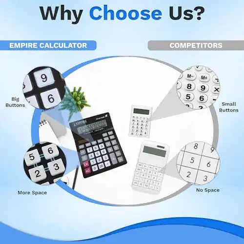 Калькулятор настольный Empire с большими кнопками и 12-значным дисплеем с большими цифрами для удобства вычислений. Подходит для студентов любого возраста и для офиса.