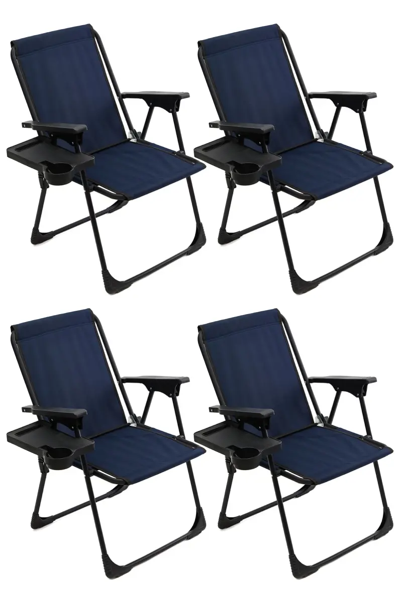 Natura 4 Adet Kamp Sandalyesi Katlanır Piknik Sandalye Dikdörtgen Bardaklıklı Lacivert-Lacivert
