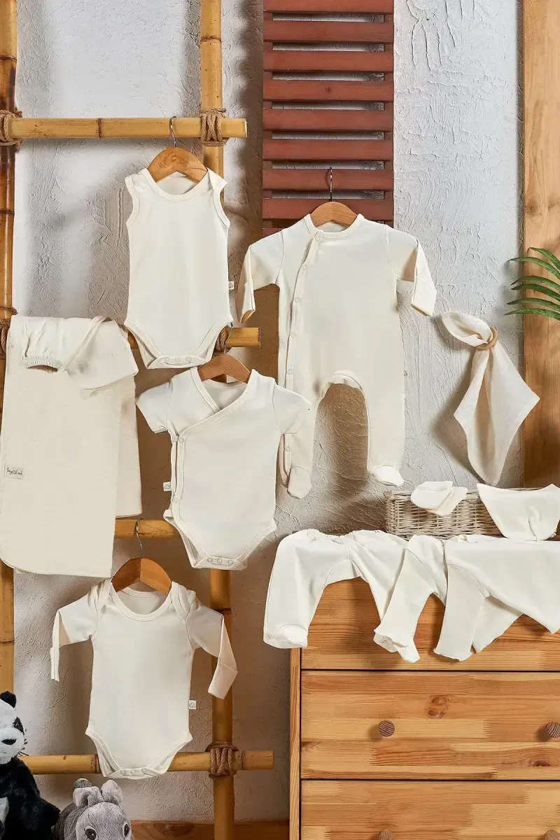 Natural 12 Parça Kasalxonadan Chiqish Komplekti, chaqalog'ingizning nozik terisi uchun maxsus %100 organik paxtadan ishlab chiqarilgan. Chaqalog'ingizning birinchi kunlarida kerak bo'ladigan barcha asosiy qismlarni o'z ichiga olgan ushbu to'plam, yumshoq to'qimasi va nafas oladigan tuzilishi bilan qulay foydalanishni ta'minlaydi. Unisex dizayni tufayli ham qiz, ham o'g'il bolalar uchun mos keladi. Chaqalog'ingizning salomatligiga zarar yetkazadigan hech qanday kimyoviy modda o'z ichiga olmaydi va GOTS sertifikatiga ega. Oson yuvish va dazmollash mumkinligi onalarning hayotini osonlashtiradi. Nafis va foydali sovg'a variantini ham taqdim etadi.