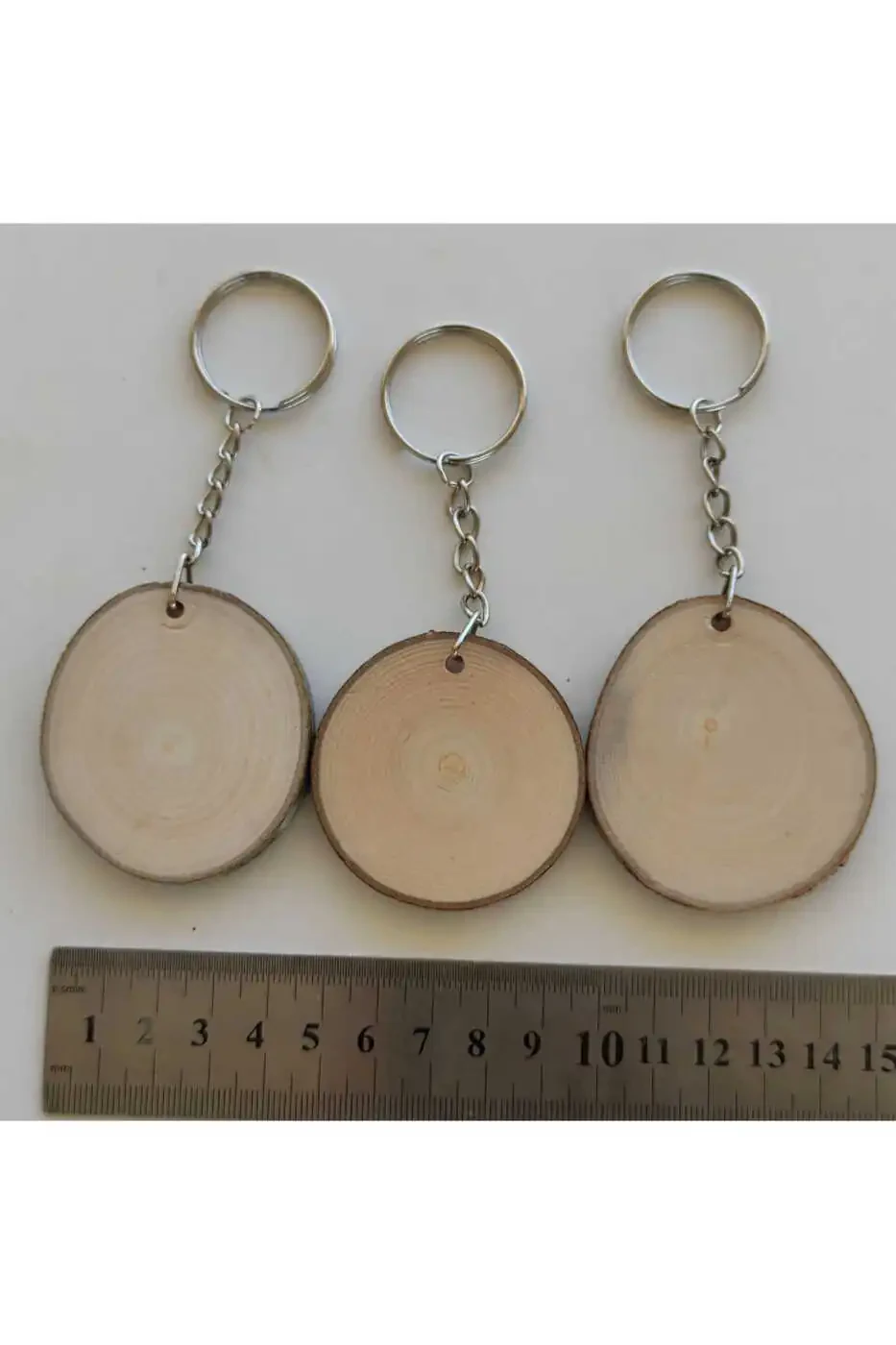 The natural wood material provides an environmentally friendly and stylish look. Each log slice has a different texture and pattern, making each keychain unique.