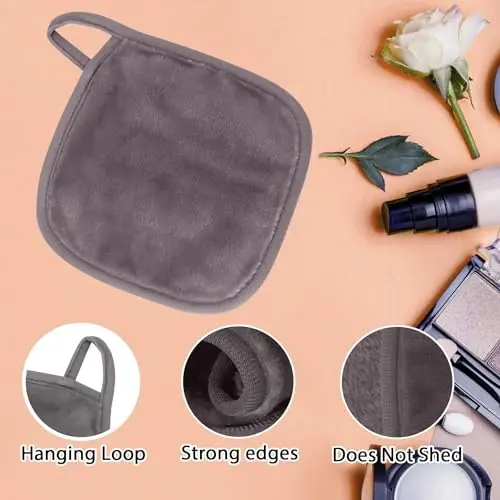 Natwag Makiyaj Tozalash Matosi | Ekologik toza, Qayta foydalanish mumkin | 12 dona to'plam, Mikrofiber, Cool Grey