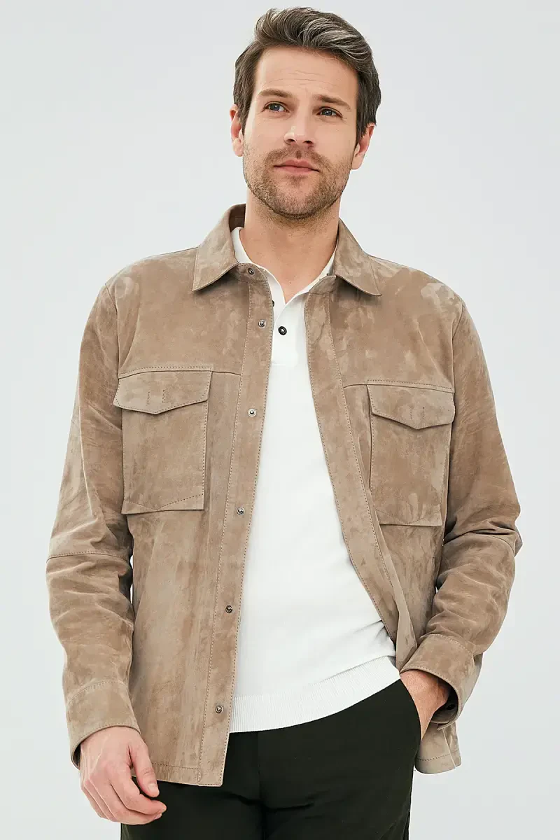 Navas Erkaklar Bej Ko'ylak Uslubidagi Charm Terisi Kurtkasi bilan stil va qulaylikni birgalikda boshdan kechiring. Hoziroq buyurtma bering va uslubingizga zamonaviy teginish qo'shing!