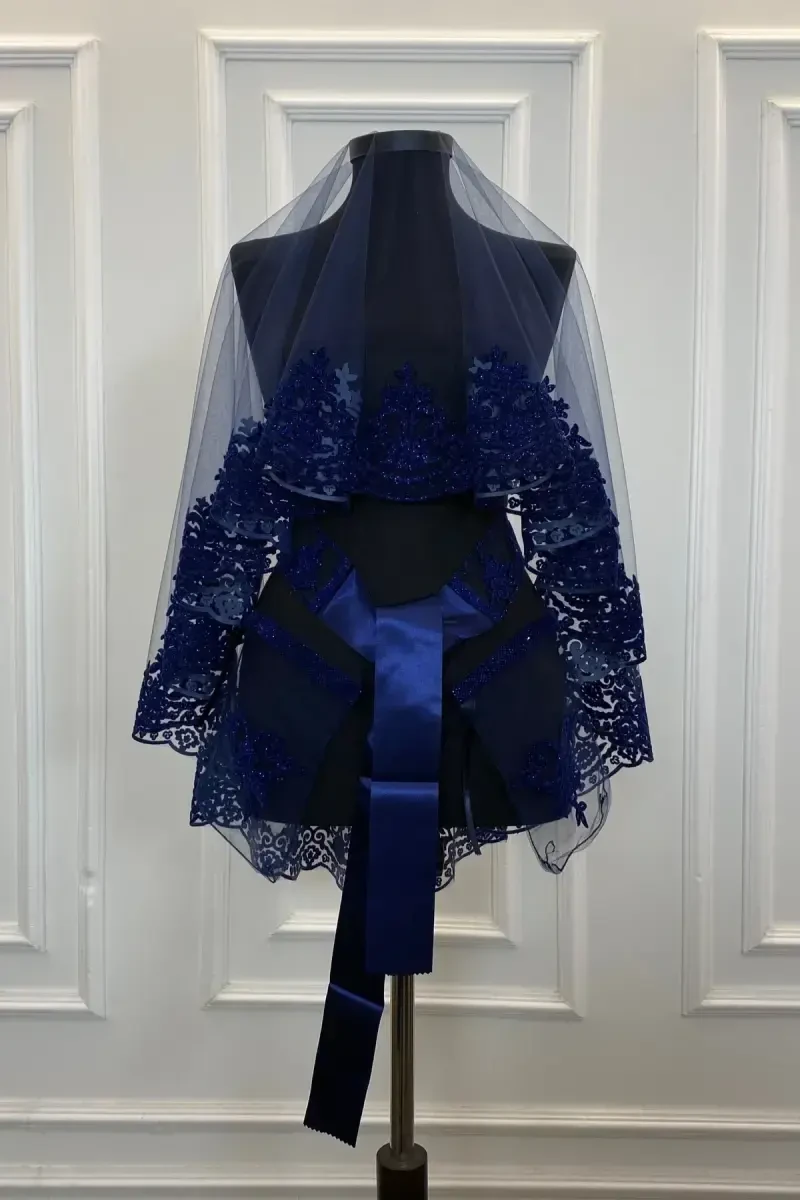 Highlight your elegance and style on your special days with the Navy Blue Bridal Veil Set carefully designed by ZEYMERADE. This dazzling set, with its classic patterned flock print and glittery details, allows you to achieve an unforgettable look on your henna night and bridal procession ceremonies. Produced using first-class quality materials, this set is long-lasting and durable. Reflecting the nobility of navy blue, this veil set combines traditional and modern lines, adapting to every style. The veil, sash, and gloves included in the set create a harmonious integrity, completing your elegance. The special motif on the sash adds a different elegance to the set, while the gloves add a sophisticated touch to your look. By choosing this special set, you can both keep your traditions alive and capture a modern style. The Navy Blue Bridal Veil Set will help you create unforgettable memories on your special days. You will have a dazzling beauty with this set, which will be one of the most important parts of your wedding preparations. Moreover, by purchasing this product, you can trust the quality of ZEYMERADE and have a perfect experience on your special days. Do not miss this special set offered at a campaign price, place your order before stocks run out. Remember, you can order a maximum of 50 of this product. You can also shop with peace of mind with a free return option within 15 days. This set, which is a perfect choice for your wedding and henna night preparations, will make you feel special. Order now and achieve the look of your dreams!