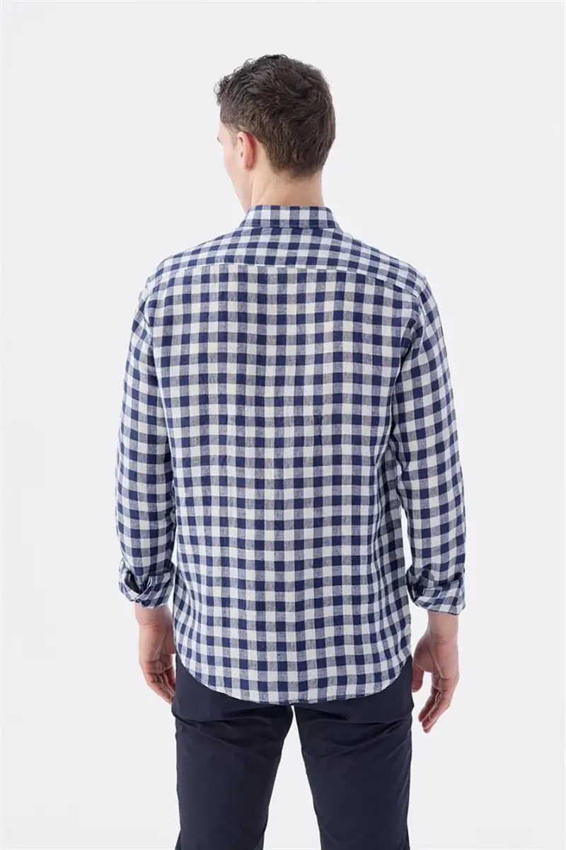 Offering both elegance and comfort in the modern man's wardrobe, the Navy Blue Comfort Fit Checked 100% Linen Shirt is a candidate to be the essential piece for summer months and seasonal transitions. Thanks to its 100% linen structure obtained from natural fibers, this special design allows your skin to breathe and provides a sweat-free usage experience all day long. By combining the unique and natural texture of linen with modern checked patterns, it helps you achieve a sophisticated look in both daily life and your special moments. Its comfort fit cut does not restrict your freedom of movement, fitting your body perfectly without being tight. An ideal choice for those looking for coolness, especially in hot weather, this shirt can be easily combined with many bottom wear items ranging from jeans to linen shorts or chino trousers. The noble tone of navy blue adapts to every style, while combining with the timeless elegance of linen to ensure you attract attention in any environment you enter. A candidate to be one of the most favorite pieces in your wardrobe for many years with its quality stitching craftsmanship and durable structure, this shirt is the perfect balance of elegance and comfort. Whether worn fully buttoned or in a sporty style by wearing a basic t-shirt underneath, this product is a fundamental piece that will enrich the combination options in your closet. It is specially designed for men who value quality and style.