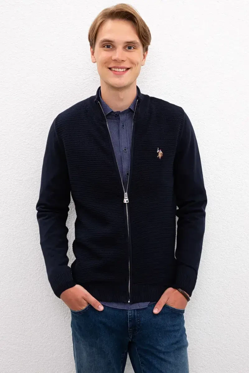 Navy Blue Men's Cardigan-VR033 is made of 100% cotton yarn. It is ideal for daily use with its comfortable fit and stylish design. Machine washable.Product DescriptionNavy Blue Men's Cardigan-VR033 is a candidate to be an indispensable part of your wardrobe! This cardigan, which will accompany you in your daily activities and more special moments, offers both comfort and elegance together. Being made of 100% cotton yarn allows your skin to breathe and ensures that you are comfortable all day long. Thanks to the natural structure of cotton, it minimizes the problem of sweating and does not irritate your skin. This navy blue cardigan can easily adapt to different styles. You can achieve a sporty look with jeans or create a more stylish combination with chino pants. The comfortable cut of the cardigan fits you perfectly without restricting your freedom of movement. The buttons are made of high-quality material and can be easily opened and closed. Navy Blue Men's Cardigan-VR033 is not just a piece of clothing, but also a style statement. It keeps you warm in cold weather and can be used as a light layer in warm weather. It is carefully designed and manufactured for long life. You can use it like the first day for many years by following the washing instructions. This cardigan is one of the basic pieces that every man should have in his wardrobe. It can be a great gift option for yourself and your loved ones. Navy Blue Men's Cardigan-VR033 is the perfect choice for men looking for elegance and comfort together. Order now and enjoy this unique cardigan!Product Features* 100% cotton yarn* Comfortable fit* Stylish design* Ideal for daily use* Machine washable* Navy blue color* Quality buttons* Long lasting* Lightweight and useful* Skin friendlyAdditional InformationIt is recommended to wash the product at 30 degrees with similar colors for long life. It is recommended to iron at low temperature while ironing. Be careful not to expose it to direct sunlight. The size on the model is M.