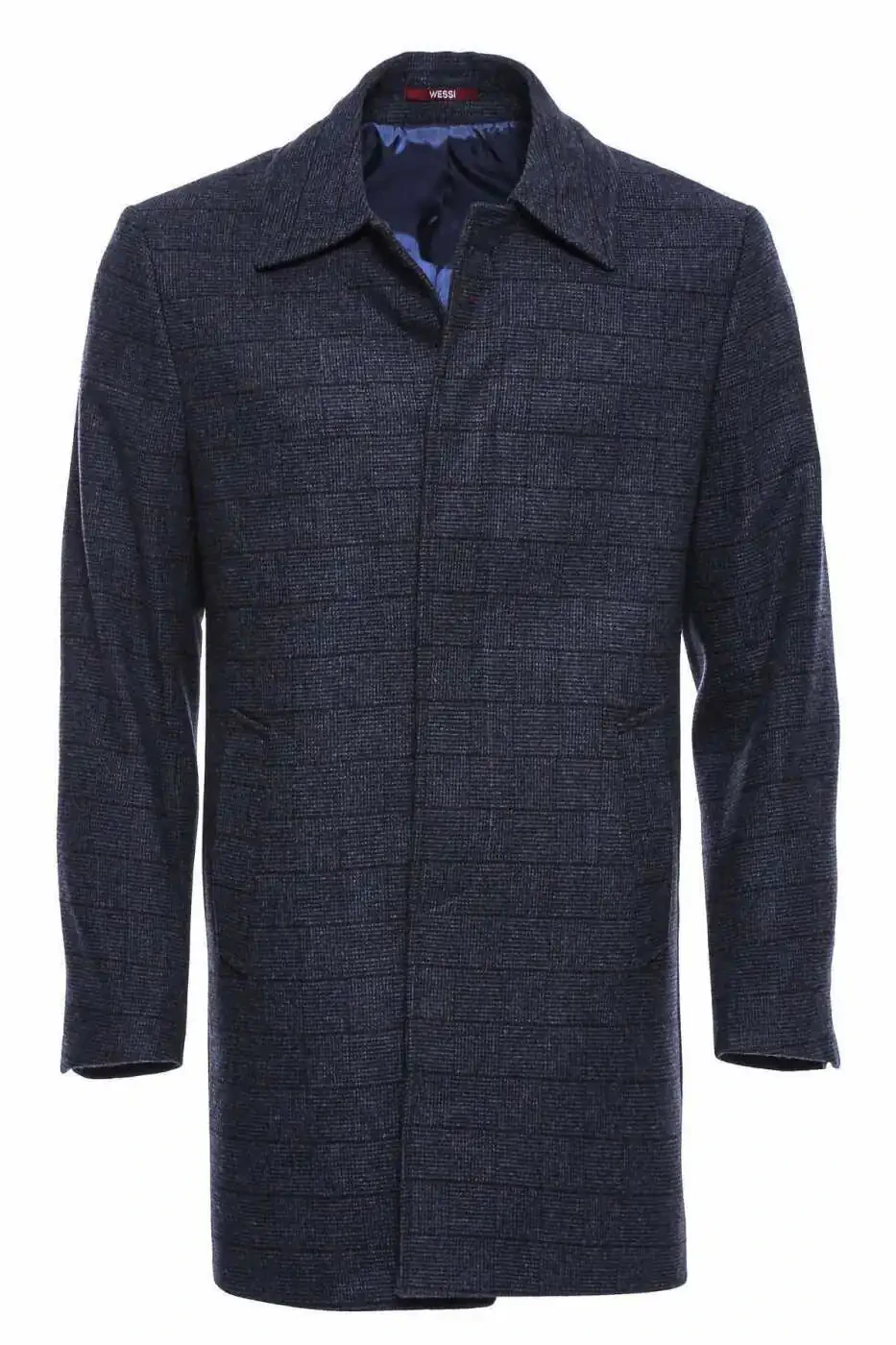 The Wessi Navy Plaid Hidden Button Point Collar Coat will be a must-have for those who want to stay both stylish and warm in cold weather!