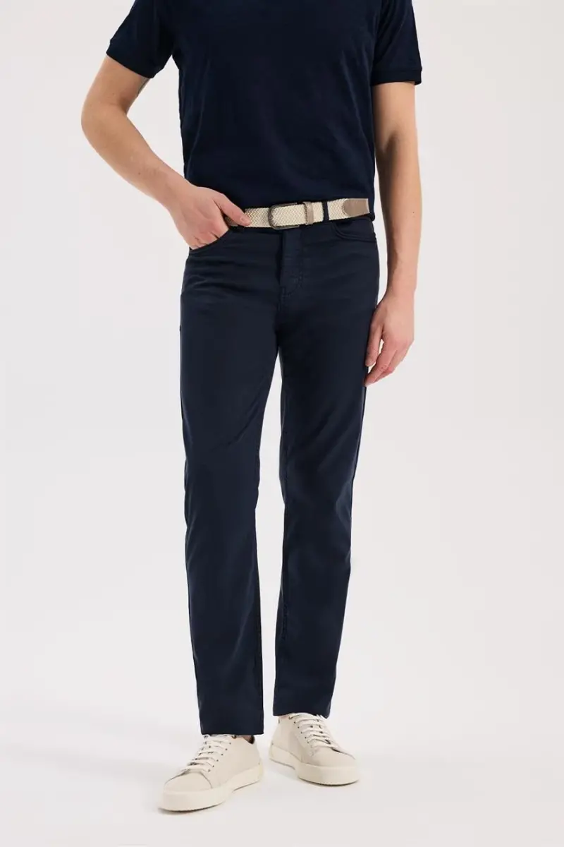 Experience elegance and comfort with the Navy Blue Slim Fit 5 Pocket Sport Pants. These pants, which should be in the wardrobe of the modern man, are an ideal option for both sports and daily combinations. Thanks to its high-quality material content, it offers comfort throughout the day, while its slim fit cut fits your body perfectly and provides a stylish look. Navy blue color easily adapts to all kinds of outerwear and offers freedom to combine. Whether you create a sporty style with t-shirts or get a more elegant look with shirts, these pants will always complement your style. The five-pocket design offers practical use, while the attention to detail is evident. The breathable structure of the fabric prevents sweating, especially in hot weather, and keeps you feeling fresh all day long. You can easily choose these pants while at the office, traveling, on weekend trips or meeting with friends, allowing you to prioritize your comfort without sacrificing your style. Enjoy being both stylish and comfortable with the Navy Blue Slim Fit 5 Pocket Sport Pants. These pants, which are candidates to be an indispensable part of your wardrobe, will contribute to every man's stylish appearance. Order now and feel the difference!