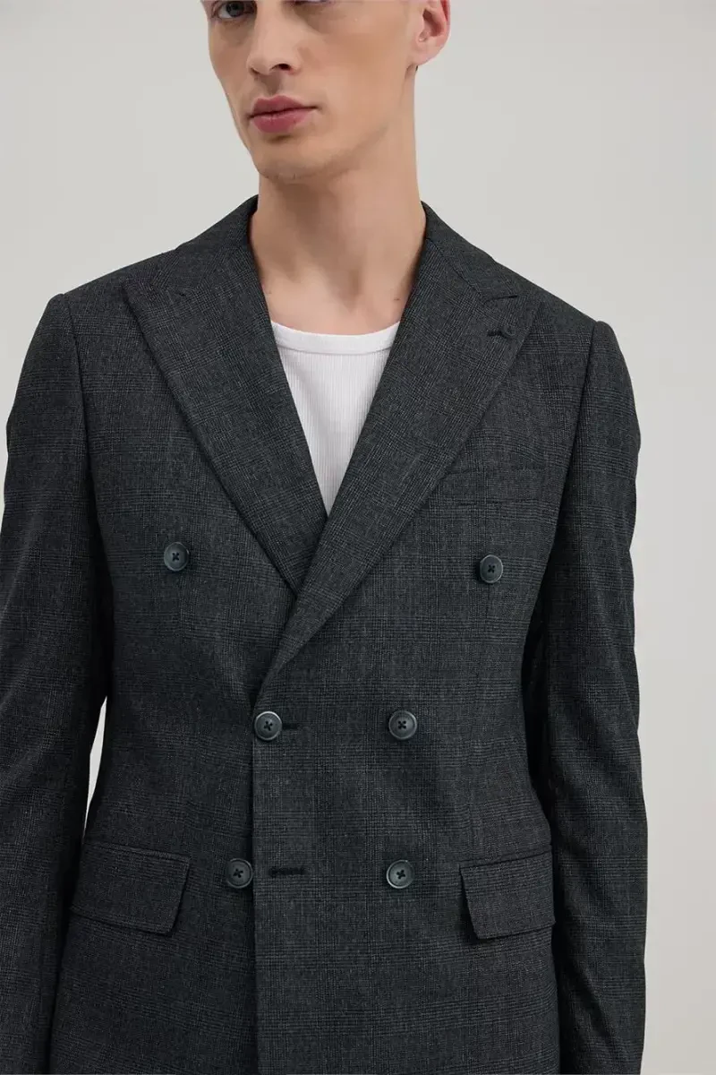 Experience elegance and modernity together with the Navy Blue Slim Fit Plaid Double Breasted Suit. This special design suit allows you to achieve a perfect look in your business life or special occasions. This suit, which attracts attention with its navy blue color, plaid pattern, and double-breasted cut, is an ideal choice to reflect your style. Thanks to its slim fit cut, it fits your body perfectly and creates a fit silhouette. It is specially designed for men who want to be both comfortable and stylish. Thanks to its high-quality fabric, it offers long-lasting use and ensures you feel comfortable all day long. Make a difference in every environment with this suit, which will be an indispensable part of your wardrobe. The Navy Blue Slim Fit Plaid Double Breasted Suit is an excellent option that complements the style of the modern man. You will always look your best with this suit that combines elegance and comfort. The flexible structure of its fabric does not restrict your freedom of movement and allows you to feel comfortable throughout the day. You can wear this suit at the office, meetings, special occasions, or other social events, and it will always ensure you look stylish and well-groomed. This suit, which attracts attention with its quality stitching and details, will maintain its place in your wardrobe for many years. Choose the Navy Blue Slim Fit Plaid Double Breasted Suit to add a modern touch to your style and highlight your elegance. You will always look stylish and confident with this suit. This design, which combines both classic and modern style, is a piece that every man should have in his wardrobe. Let your style speak with the Navy Blue Slim Fit Plaid Double Breasted Suit and make a difference in every environment. With its superior quality fabric and perfect workmanship, this suit will help you maintain your elegance for many years. This suit, which contains care and quality in every detail, will be the indispensable choice of the modern man. You will always feel special with this suit that offers elegance and comfort together. The Navy Blue Slim Fit Plaid Double Breasted Suit is a must-have piece in the wardrobe of stylish men. With this suit, you can highlight your elegance and style both in your business life and on your special days. Thanks to its modern cut and quality fabric, you will always feel comfortable and stylish.