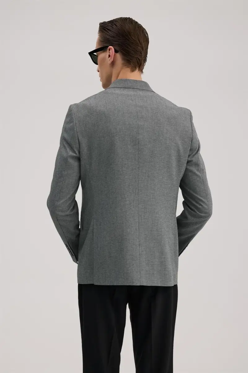 Combine elegance and modernity with the Navy Blue Slim Fit Double Breasted Suit. This suit will make you stand out in any environment with its special design and perfect cut. Whether it's a business meeting, a special event, or everyday use, this suit always offers you a perfect look. The slim fit cut creates a modern and elegant silhouette that hugs your body, while the double-breasted model brings classic elegance to the present. The navy blue color is compatible with all kinds of combinations and helps you to maintain a sophisticated stance.The fabric of the suit consists of a mixture of 63% polyester, 34% viscose and 3% elastane. This special fabric blend gives the suit a perfect touch and durability. Polyester prevents the fabric from wrinkling, ensuring it always looks neat and well-groomed. Viscose adds softness and breathability to the fabric, offering comfortable use all day long. Elastane adds flexibility to the fabric and does not restrict your freedom of movement.The Navy Blue Slim Fit Double Breasted Suit not only looks stylish but also offers comfortable use. Thanks to its light and flexible fabric, you can move comfortably throughout the day and easily handle your tasks. The inner lining of the suit prevents sweating, allowing your skin to breathe and helping you stay fresh all day long.This suit will be an indispensable part of your wardrobe. With this suit that offers both classic and modern style together, you can always feel stylish and confident. The Navy Blue Slim Fit Double Breasted Suit is the best way to reflect your style and make a difference. This suit, which gives the feeling of custom tailoring, will fit you perfectly and give you a perfect look. Choose this suit to feel special and let your style speak for itself. Remember, a good suit is not just a piece of clothing, but also an investment.