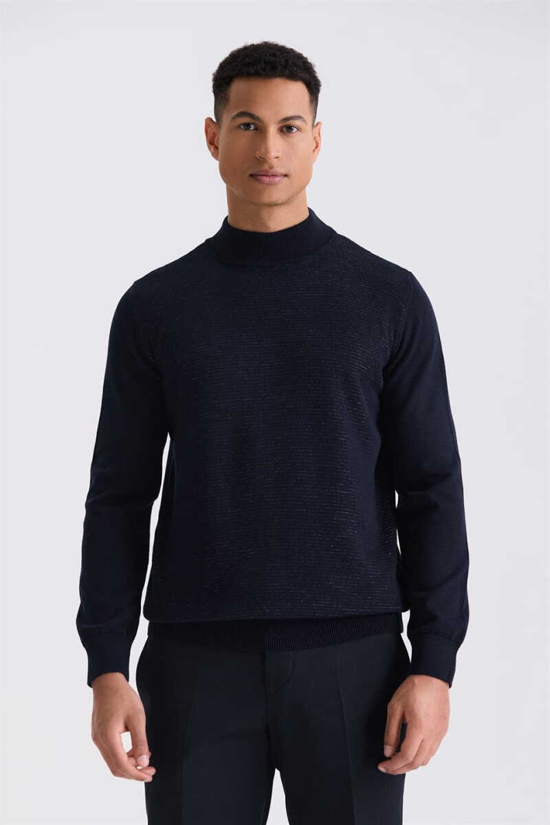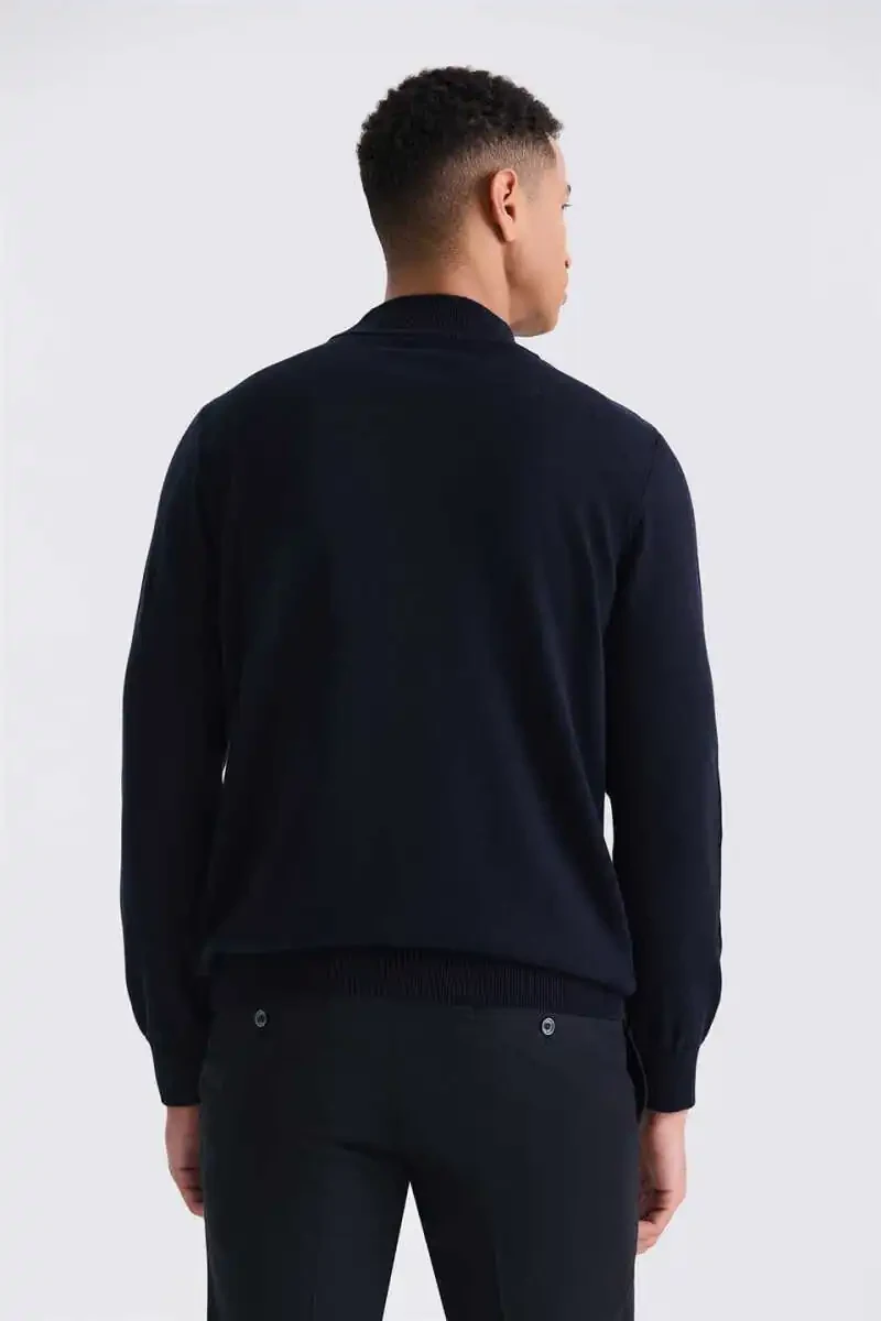 **Navy Blue Slim Fit Half Fisherman Neck Tricot Sweater**