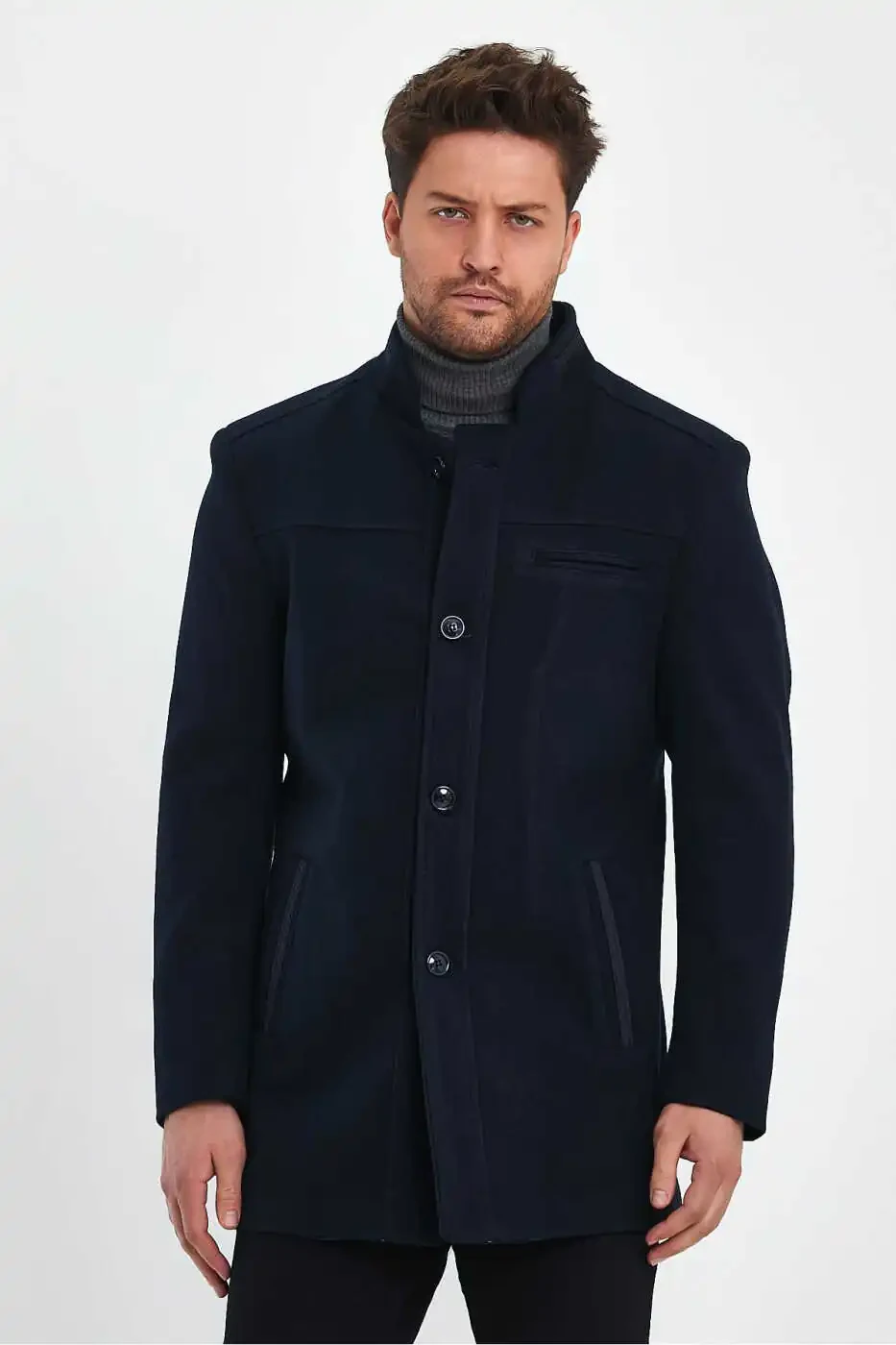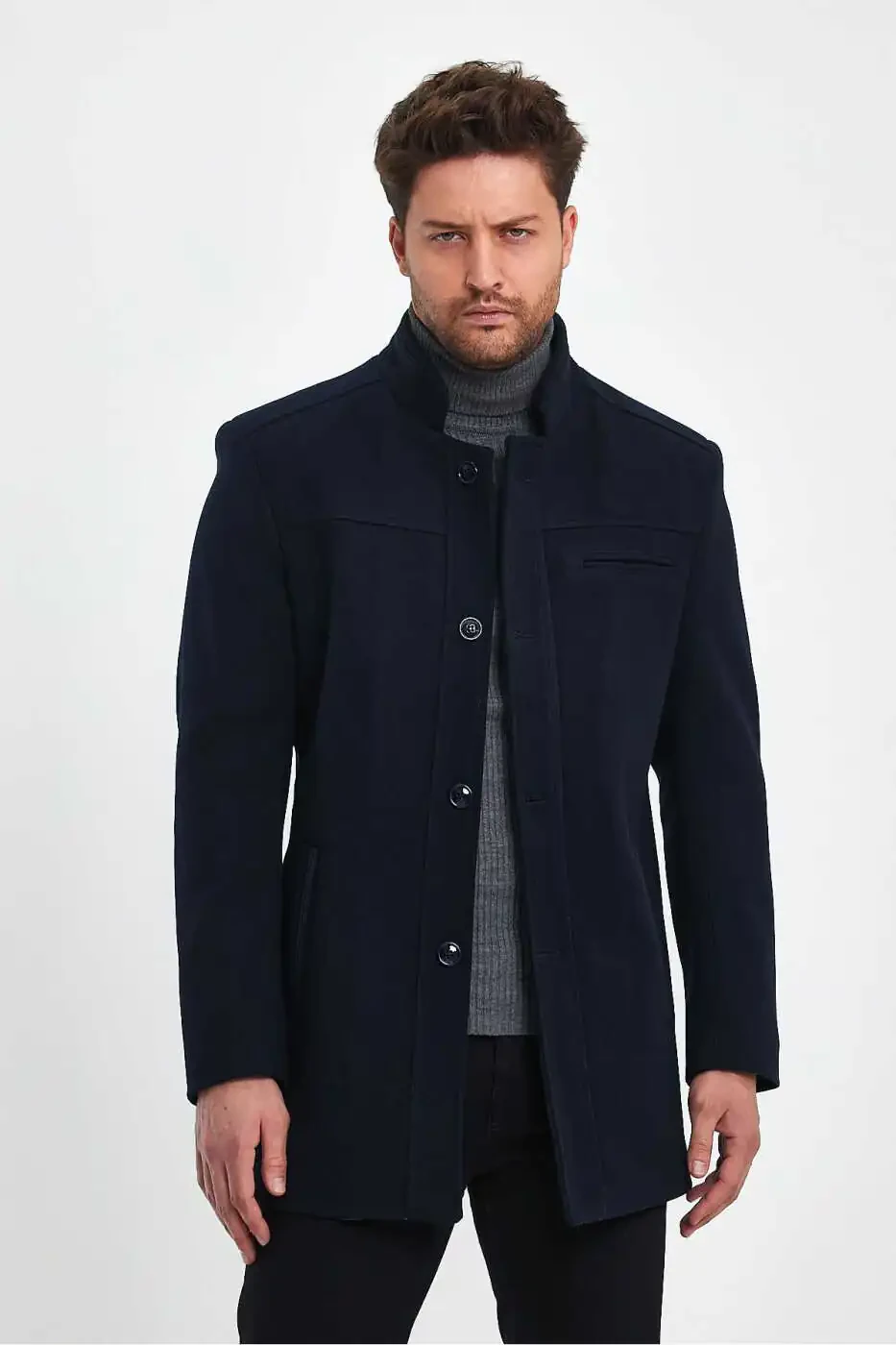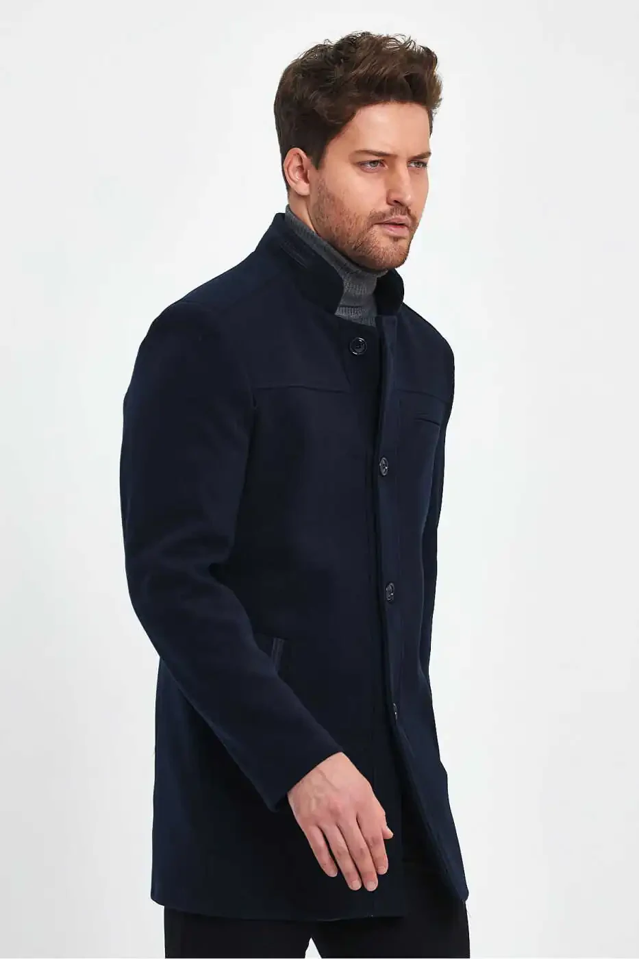 The men's navy slim fit cashmere coat is a piece you can easily wear in everyday life, business life, or at special events. With its elegance, quality and comfort, it will be your indispensable style piece in the winter months.
