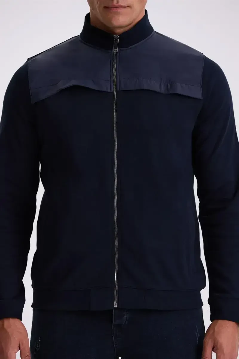 Navy Blue Slim Fit Zippered Cotton Lycra Sweatshirt Top is a perfect option for men who adopt an active lifestyle and do not want to compromise on their style. The perfect harmony of superior quality cotton and lycra fabric offers unique comfort that lasts all day long. The slim fit cut creates a modern and dynamic silhouette with its body-hugging structure, while not restricting your freedom of movement. It is ideal after an intense workout or for a relaxing weekend outing. Thanks to its zippered design, it can be easily put on and taken off and adapts to different styles. The elegance of navy blue guarantees elegance in every combination. The cotton texture of the sweatshirt offers a soft touch to your skin, while the lycra content provides flexibility and durability. In this way, it maintains its original form even in long-term use. The slim fit cut gently emphasizes your body lines and helps you achieve a fitter look. The zippered front offers the opportunity to add a personal touch to your style. You can create different looks by leaving it completely closed or slightly open. The navy blue color can be easily combined with other pieces in your wardrobe. You can create a sporty style with sports shoes, or a more casual look with a stylish t-shirt and sneakers. Navy Blue Slim Fit Zippered Cotton Lycra Sweatshirt Top is not just a piece of clothing, but also an expression that reflects your lifestyle. This sweatshirt, which contains quality and care in every detail, will be an indispensable part of your wardrobe. This sweatshirt will accompany you whenever you want to feel good and look stylish. This product, which offers comfort and elegance together both in sports activities and in daily use, supports your active lifestyle. Moreover, thanks to its durable structure, it will maintain its place in your wardrobe for many years. Take your style and comfort to the next level with the Navy Blue Slim Fit Zippered Cotton Lycra Sweatshirt Top.