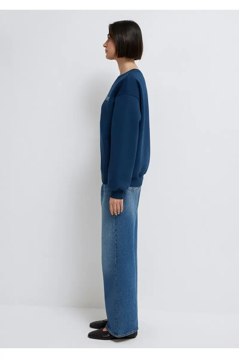 The carefully designed logo print gives a stylish and modern look, while the navy color complements any combination. Whether you want to create a sporty look with jeans or combine it with a stylish skirt to showcase your style in everyday life, the Logo Printed Navy Sweatshirt will be an indispensable part of your wardrobe.