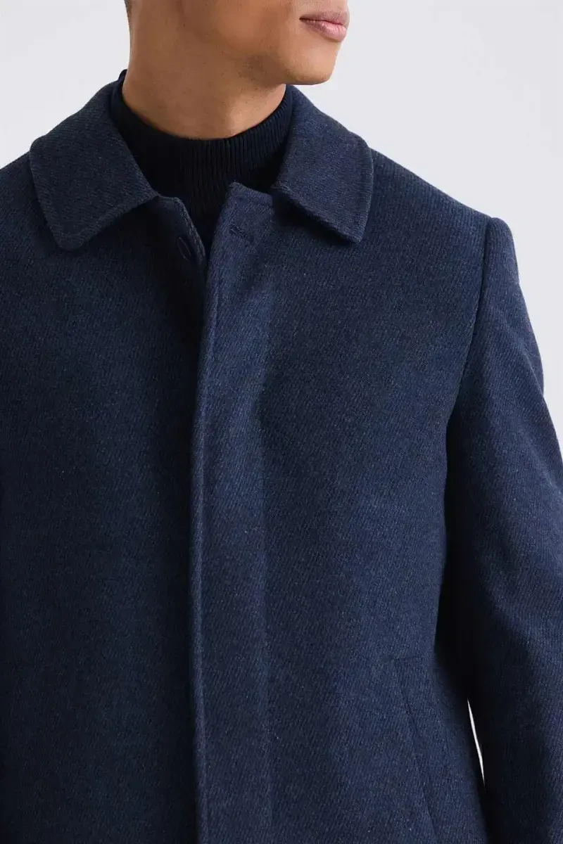 Navy Blue Classic Fit Berber Collar Wool Coat | Style and Comfort Combined