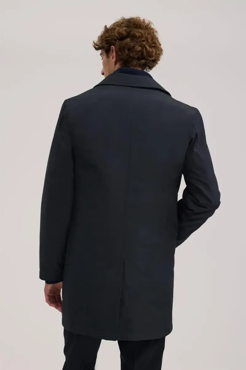 Navy Blue Comfort Fit Concealed Button Jacket: Stylish and Comfortable