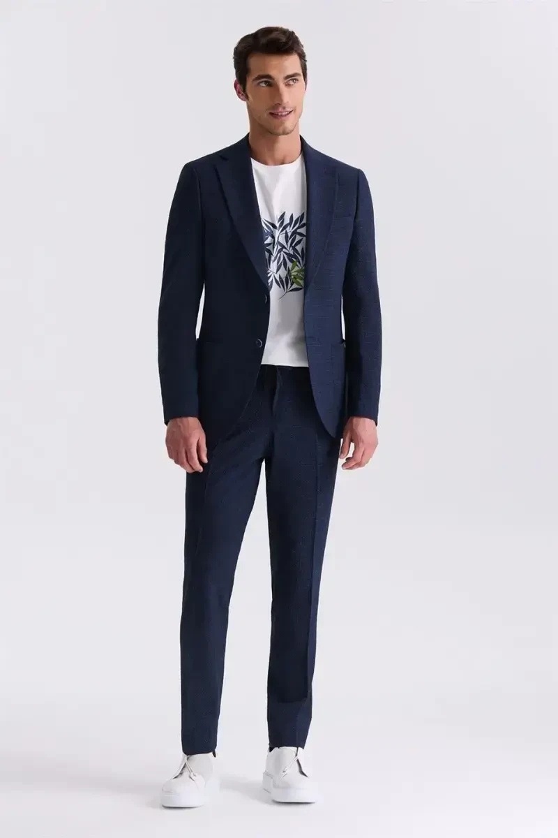 Slim Fit Suit, Patterned Suit, Navy Blue Suit, Sports Suit, Mono Collar Suit
