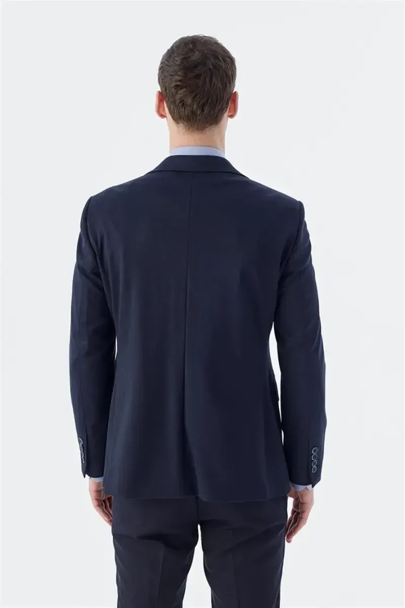 Meet the Navy Slim Fit Single-Breasted Double Vent Blazer, the perfect addition to your sophisticated and stylish look! This blazer will highlight your elegance in your business life, special events, or daily combinations. It stands out with its perfect fit and superior fabric quality. Its deep navy color goes with any outfit, while the slim fit design perfectly reveals your body lines. The single-breasted detail adds a modern and sophisticated touch, while the double vent gives the jacket a dynamic look. Made from high-quality 60% Polyester, 36% Viscose, and 4% Elastane blend, the fabric offers both comfortable wear and maintains its shape with prolonged use. This jacket, which is especially recommended for dry cleaning, is poised to be an indispensable part of your wardrobe for many years with its careful care.