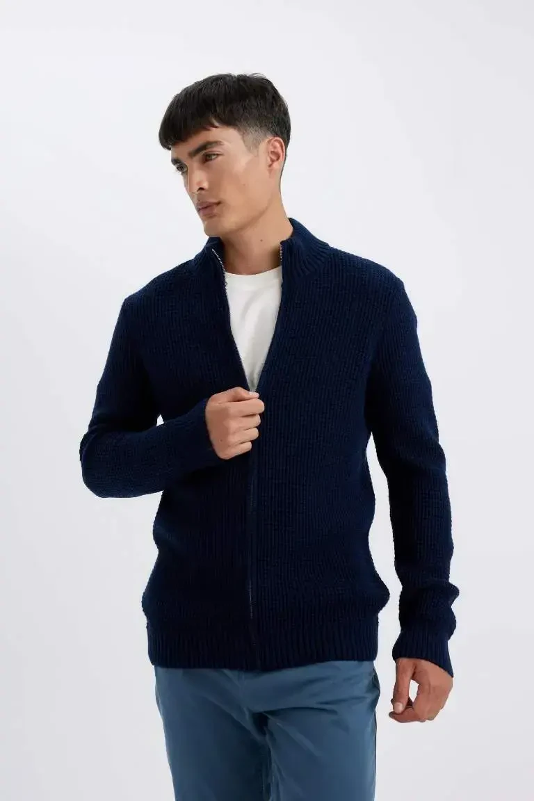 Introducing the Navy Blue Standard Fit Regular Cut Half Fisherman Neck Zippered Waffle Cardigan, the perfect fusion of style and comfort for the cooler seasons. With its cozy and warm design, this cardigan is a wardrobe staple that will elevate your style game. Made from a soft and breathable waffle fabric, this cardigan offers all-day comfort, while its relaxed fit drapes effortlessly over your body. The half fisherman neck and zippered design provide versatility for any occasion, while the navy blue color effortlessly complements any outfit, giving you a polished look. Stay warm and stylish this winter with the Navy Blue Standard Fit Regular Cut Half Fisherman Neck Zippered Waffle Cardigan. This cardigan will ensure you make a statement at any event, from casual gatherings to formal occasions, all while keeping you cozy with its soft and gentle fabric.