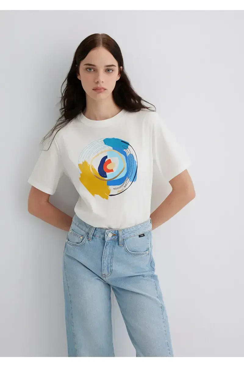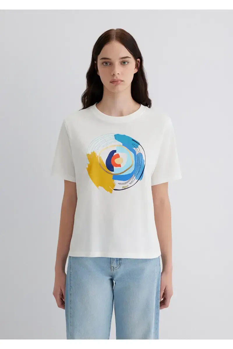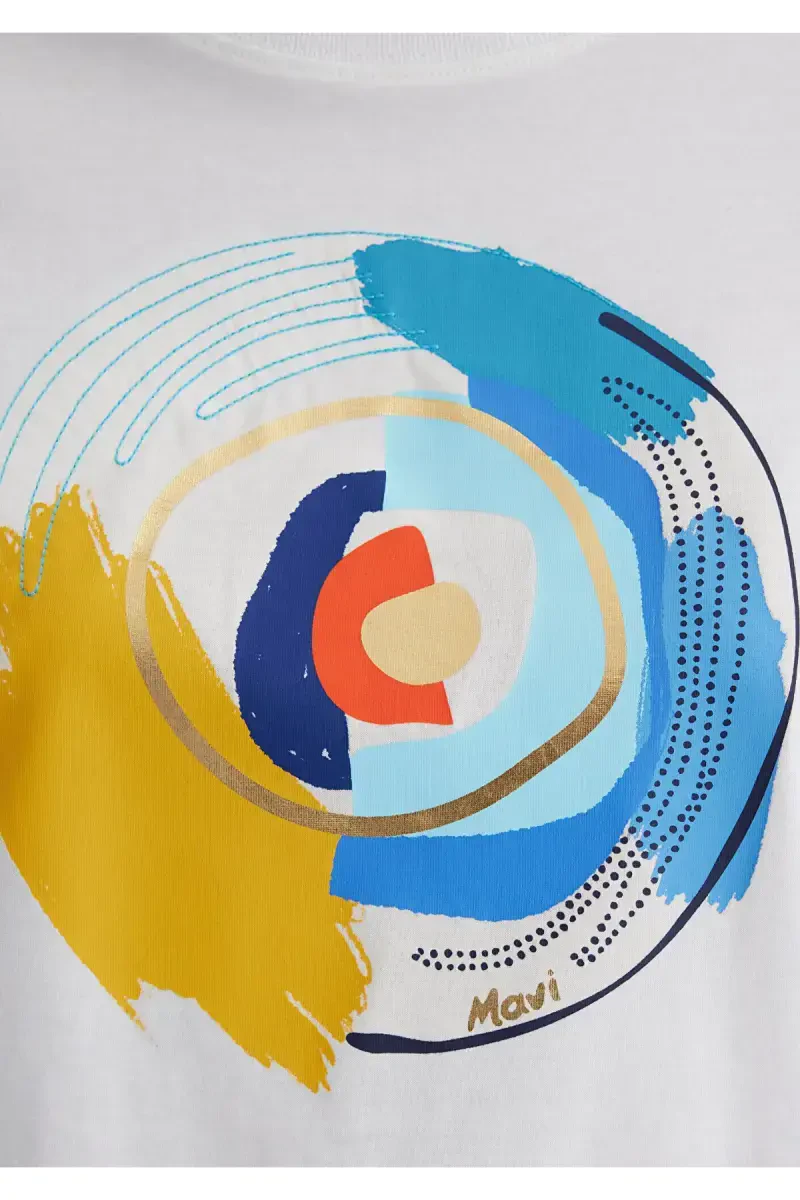 Nazar Boncukli Oq Futbolka | Regular Fit, Paxtalik, Chiroyli va Energetik!
