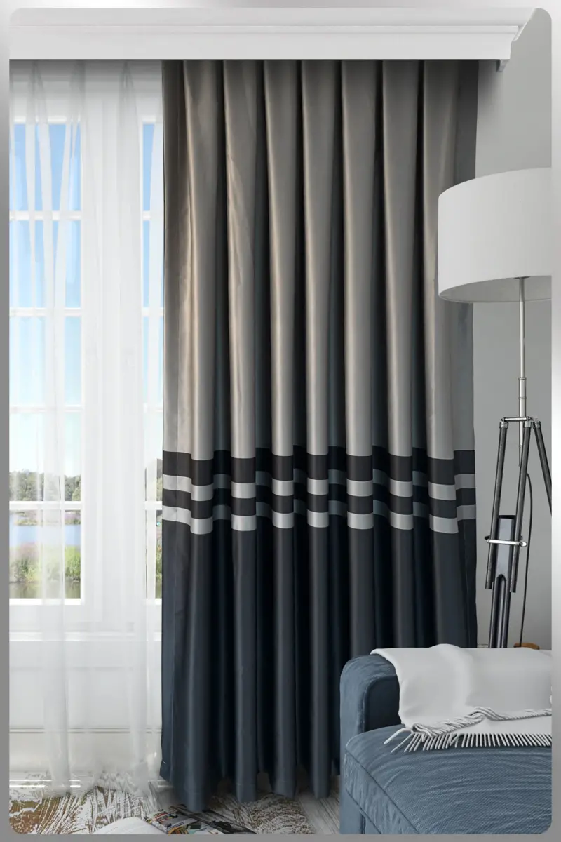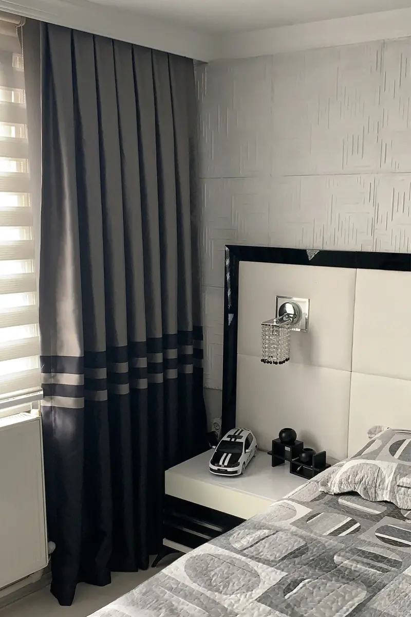 Nebumu Roma Bordürlü Pileli Fon Perde-Gri Antrasit