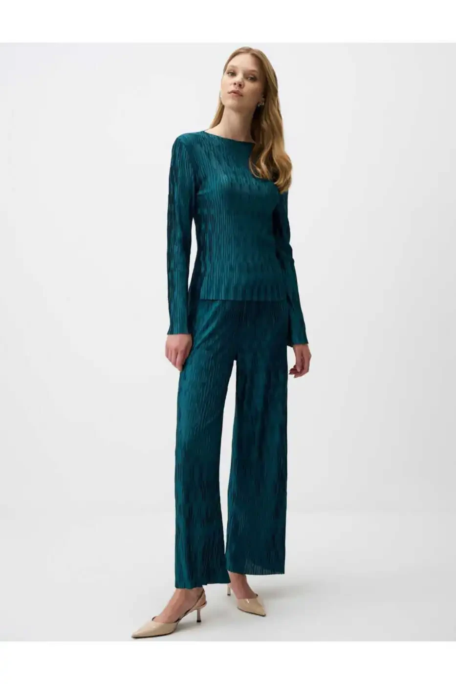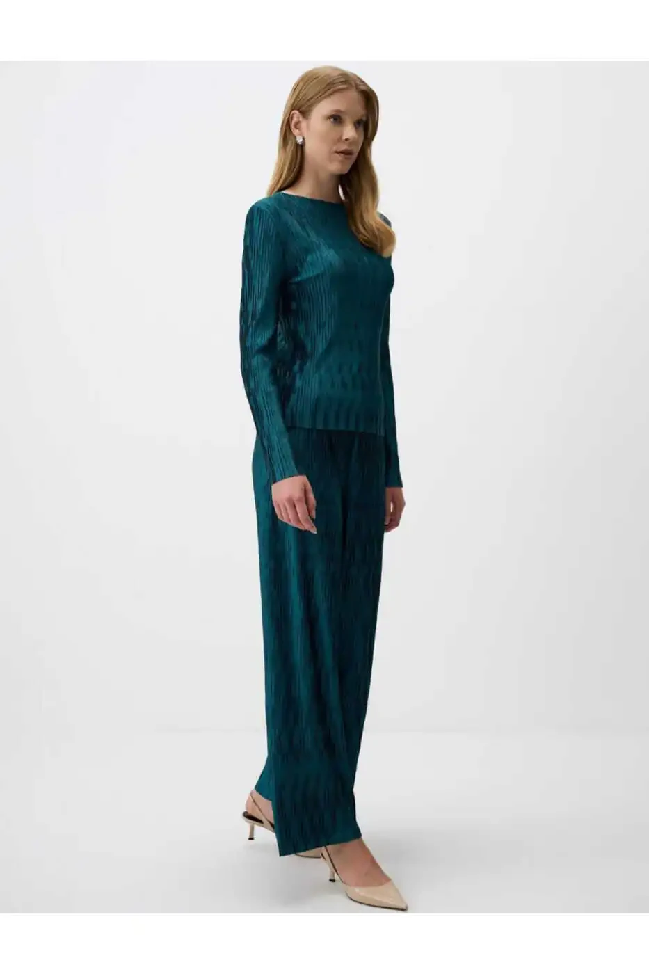 Брюки свободного кроя с широкими штанинами и блестящей вязкой нефритового цвета — идеальный выбор для тех, кто ищет сочетание элегантности и комфорта. Мягкая текстура трикотажной ткани обеспечивает комфорт в течение всего дня, а свободный крой не сковывает движений. Деталь с блестками на поясе брюк придает им современный и модный вид. Эти брюки можно сочетать с элегантными блузками, базовыми футболками или свитшотами как в повседневной жизни, так и на особые случаи, создавая различные стили. С кроссовками можно создать непринужденный образ, а с туфлями на каблуке — элегантный ансамбль. Эти брюки, изготовленные из высококачественного материала с тщательной обработкой, надолго станут незаменимой частью вашего гардероба, добавив вашему стилю современный и изысканный штрих. Нефритовый цвет — это цвет, который можно носить в любое время года и легко сочетать с другими цветами, что делает его предпочтительным выбором. В этих брюках вы будете чувствовать себя стильно и комфортно. Универсальная вещь, которую можно носить как в повседневной жизни, так и на вечеринках. Не пропустите эти брюки, которые позволят вам чувствовать себя свободно и стильно!