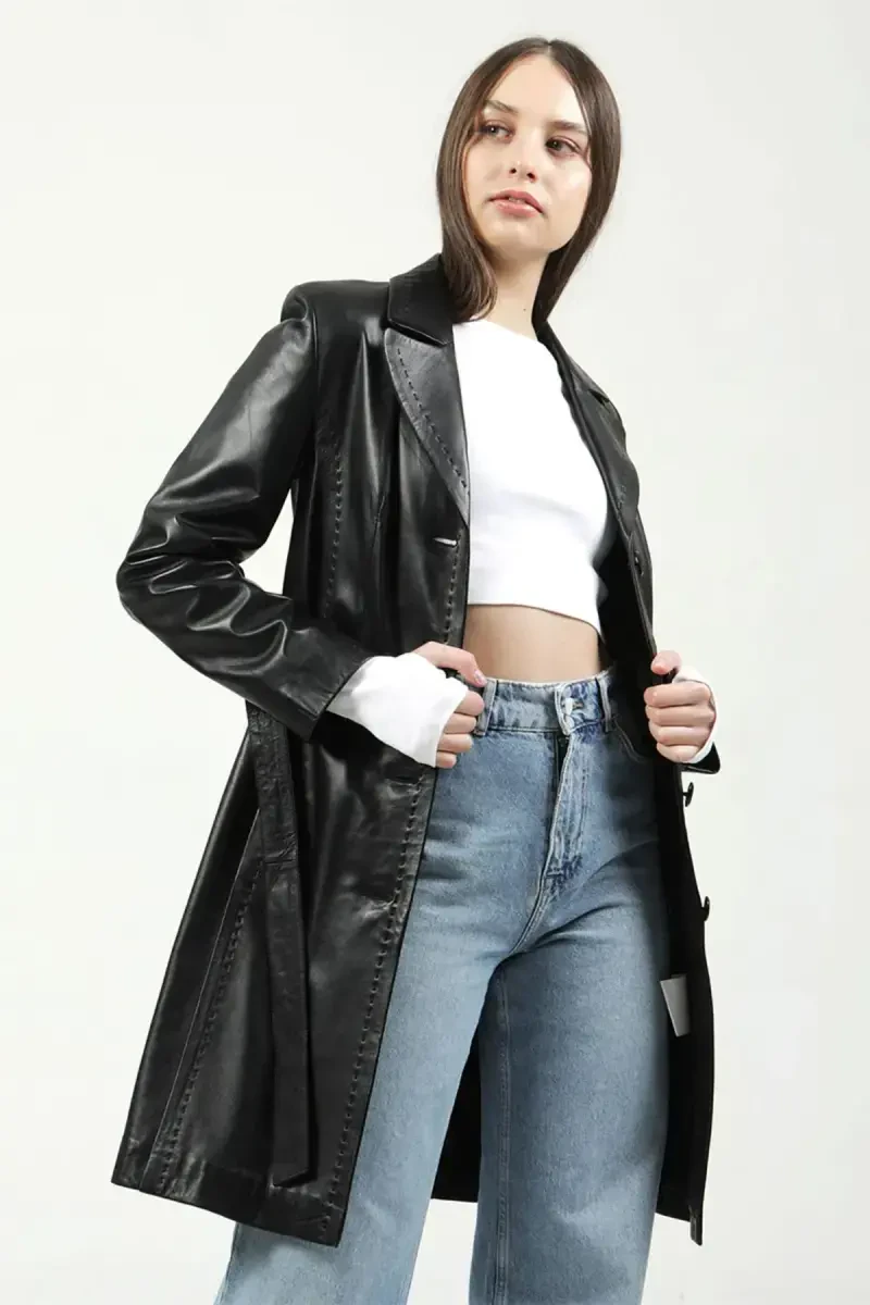 Neri Gerçek Deri Kadın Kaban ile stilinizi tamamlayın!