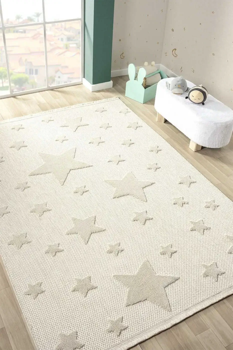 нескользящий коврик, моющийся коврик, тканый коврик, коврик для детской комнаты, коврик для детской комнаты, кремовый коврик, коврик со звездами, AYAZ 13, коврик, устойчивый к пятнам, безопасный коврик, удобный коврик, мягкий коврик