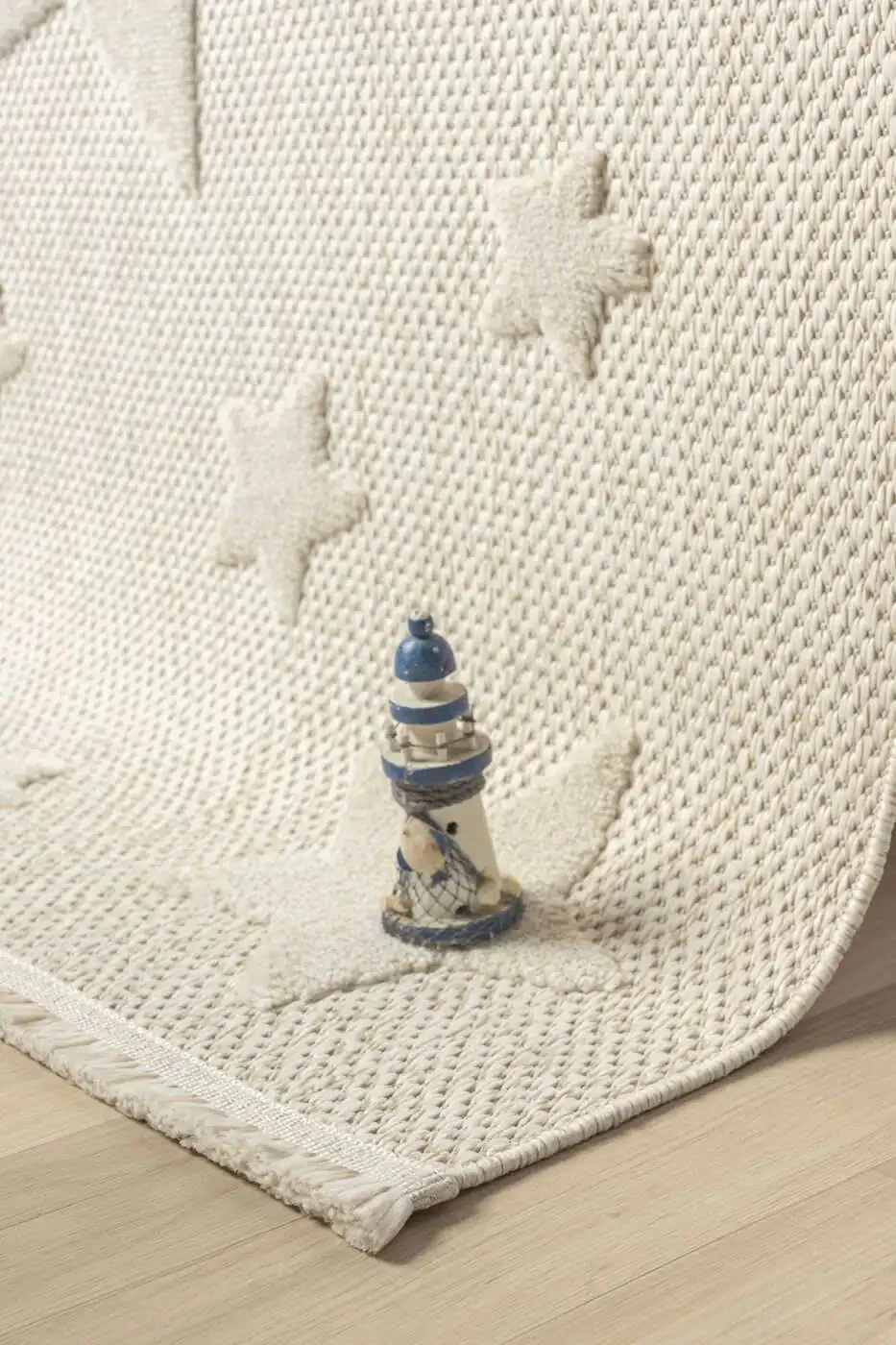 Нескользящий моющийся тканый коврик кремовый с звездами для детской комнаты ковер AYAZ 13