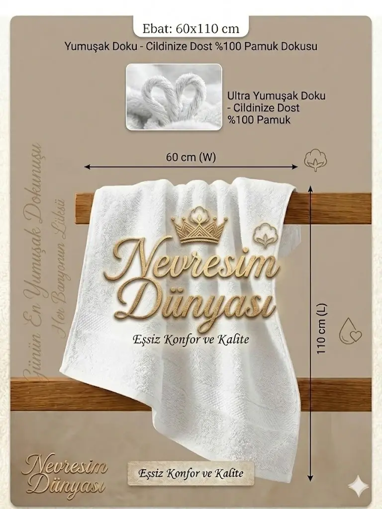 Ürün Ölçüleri • 60x110 cm. Ürün Özellikleri • %100 Pamuk 320 Gr