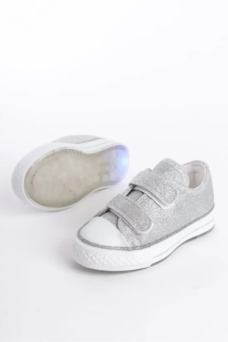 New Season Silver Glitter Velcro Girls' Shoes, Orthopedic Girls' Daily Shoes 21-30 Light-Up-Silver**Product Description**Our New Season Silver Glitter Velcro Girls' Shoes, which combine elegance and comfort for little princesses' feet, are set to become an indispensable part of everyday wear! This shoe, which adorns the dreams of girls with its sparkling silver color, glitter details, and practical Velcro design, stands out not only for its appearance but also for its orthopedic features. With a wide size range from 21 to 30, this shoe, which adapts to the tiny feet of all ages, offers comfortable use all day long. This model, which adds fun to every step with its light-up sole, helps your child reflect their energy while the orthopedic insole supports foot health. This shoe, which you can easily choose for school, the park, the playground or special occasions, is both a stylish and healthy option. While adding elegance to your child's combinations with the nobility of silver and the sparkle of glitter details, it can be easily put on and taken off thanks to its Velcro structure. With its light and flexible structure, it does not restrict your child's freedom of movement and offers a pleasant experience all day long. This shoe, made of high-quality materials, promises long-lasting use. This orthopedic shoe, designed with your child's foot health in mind, contributes to foot development and is an ideal choice for parents who do not want to compromise on their elegance. Complete your child's style with this shoe that offers comfort and sparkle together in every step!**Product Features*** New season design* Silver glitter details* Velcro closure* Orthopedic insole* Light-up sole* Size range 21-30* Special design for girls* Suitable for daily use* Light and flexible structure* Quality material* Easy to put on and take off**Additional Information**The product should be cleaned by gently wiping with a damp cloth. Bleach or harsh chemicals should not be used. Avoid exposing to water to prolong the life of the light-up sole. The orthopedic feature of the product helps support foot health with regular use. Please order by accurately determining your child's shoe size.