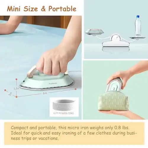 Newbealer Seyahat Ütüsü - Çift Voltajlı, 120V/220V Mini Kuru Ütü (Buhar Yok), Yapışmaz Seramik Taban, 302℉ Isı Pres Makinesi Dikiş ve Yorgancılık İçin, 0.95lbs Hafif (Yeşil)