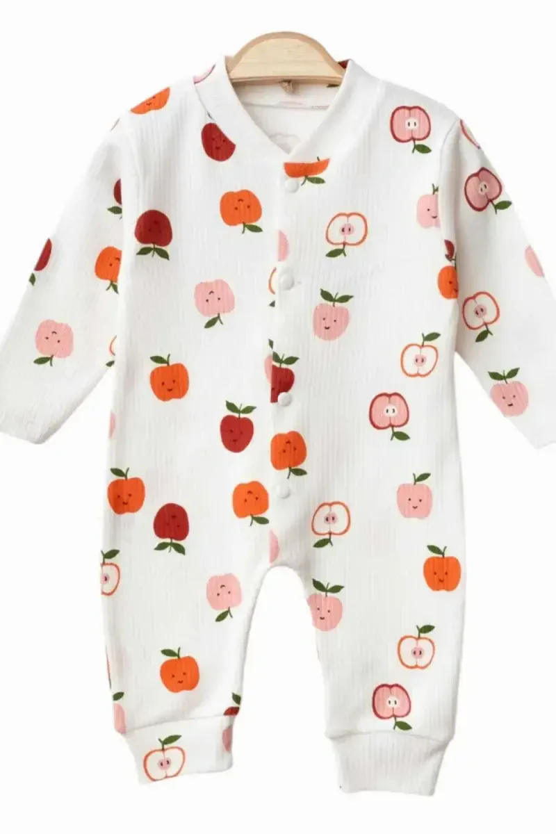 The comfort and reliability of the clothes your baby will wear in the first months are of great importance for a peaceful sleep and a happy day. That's exactly where the Newborn Baby Apple Print Ribbed Fabric Snap-Button Baby Onesie comes into play. This onesie is made of 100% cotton and does not contain any harmful substances that could harm your baby's delicate skin. Thanks to the natural structure of cotton, the onesie, which has high air permeability, prevents sweating and helps your baby's skin stay dry and healthy. The ribbed fabric gently touches your baby's skin with its soft texture, while its flexible structure does not restrict freedom of movement. It allows your baby to kick and crawl comfortably. Its unisex design makes this onesie an ideal option for both baby girls and boys. The cute apple prints scattered on the white background add a sweet touch to your baby's outfit. These fun patterns will bring joy and vitality to your baby's wardrobe. The snap-button design of the onesie makes diaper changing easier and offers practical use. The snaps are specially designed not to harm your baby's skin and close securely. Suitable for babies aged 1-3-6 months, this onesie is designed to adapt to your baby's growth stages. This onesie is not only stylish and cute but also extremely useful. Thanks to its easy-to-wash and ironable feature, you can always keep your baby's clothes clean and tidy. This onesie, which you can use for a long time thanks to its durable structure, will be one of your baby's favorite clothes in the first months. The Newborn Baby Apple Print Ribbed Fabric Snap-Button Baby Onesie is a stylish and useful option that prioritizes your baby's comfort and health. By adding this cute onesie to your baby's wardrobe, you can ensure that they have a comfortable and happy start. This onesie is gentle on your baby's skin and makes life easier for mothers with its practical use. Moreover, it adds elegance to your baby's style with its apple prints. In short, the Newborn Baby Apple Print Ribbed Fabric Snap-Button Baby Onesie will be a perfect choice for both your baby and you.