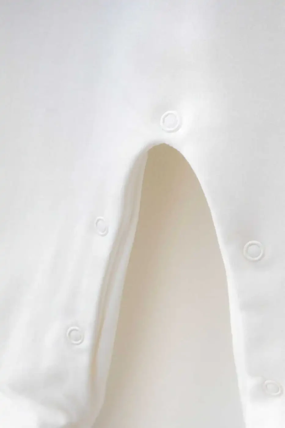 The triangle neck design helps your baby to be easily dressed and undressed, while the balloon sleeve detail allows the romper to move freely. Designed with baby-friendly materials, it adapts to your baby's delicate skin.