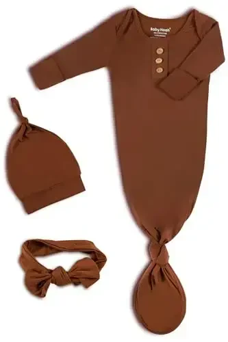 Meet the Newborn Baby Knotted Gown, Super Soft Silky Infant Sleeper, Baby Girl Sleep Gown with Mittens, Bow, and Hat Set that offers a touch as soft as silk to your baby's delicate skin! Designed for your little princess or prince, this unique sleep gown set combines comfort, practicality, and elegance. It is made from carefully selected materials to ensure your baby has a comfortable sleep and stays happy throughout the day.This special set is made from a blend of 95% Modal and 5% Spandex. The natural softness and silky texture of the Modal fabric gently wraps your baby's skin and prevents irritation. Spandex provides flexibility, allowing your baby to move freely and turn comfortably during sleep. This ensures that your baby experiences uninterrupted and peaceful sleep.The Newborn Baby Knotted Gown also stands out with its practical design. Thanks to the knot at the bottom, diaper changing is now much easier and faster. Without having to deal with complicated buttons, zippers, or laces, you can simply untie the knot, change your baby's diaper, and then retie it. This feature provides great convenience, especially during night sleep or when you are out.Foldable mittens designed to protect your baby's tiny hands are an integral part of the gown. These mittens, which prevent your baby from scratching their face with their nails, also keep their hands warm, increasing their comfort. When not needed, you can fold the mittens to free your baby's hands.The Newborn Baby Knotted Gown is a stylish option that your baby can wear when leaving the hospital or on special occasions. With its long-sleeved design and cute button details, it will look great on your baby. The hat and bow headband included in the set complete the combination, taking your baby's elegance one step further. The extra-long design of the gown extends its usage period as your baby grows, providing you with an economical solution.This special design not only offers a stylish look but also prioritizes your baby's comfort and safety. It does not contain any substances that could harm your baby's sensitive skin and is made from carefully selected materials. The Newborn Baby Knotted Gown will accompany your baby from their first days and help you create unforgettable memories. It is one of the most meaningful and useful baby gifts you can give to your loved ones.