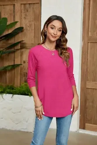 Блузки Newchoice женские с рукавами 3/4 - незаменимый элемент вашего гардероба благодаря удобному круглому вырезу горловины, базовым туникам и свободному крою! Эта универсальная блузка с рукавами 3/4 создана для того, чтобы сделать вашу жизнь более комфортной и легкой. Изготовлена из смеси 65% вискозы, 30% полиэстера и 5% спандекса. Обладает высокой эластичностью, воздухопроницаемостью и приятна для кожи, обеспечивая комфорт в течение всего дня. Вы можете создать непринужденный шикарный образ, будь то отдых дома или выход на улицу. Дизайн рукавов 3/4 добавляет стильный и удобный штрих с идеальной длиной рукава, а классический вырез лодочкой реглан и элегантный зубчатый изогнутый подол привлекают внимание. Эти женские осенние блузки имеют идеальную длину для сочетания с леггинсами. Легко сочетаются с различными однотонными вариантами и нейтральными тонами. На модели размер S. Идеальная базовая футболка, которую можно носить круглый год и комбинировать с другими вещами. Эта женственная длинная блузка поражает своей мягкостью! Сверхмягкая ткань футболки достаточно легкая, чтобы надеть сверху куртку, а рукава 3/4 достаточно идеальны, чтобы не собираться под рукавом куртки. Удлиненная футболка в стиле туники позволяет создавать различные комбинации. Можно стирать вручную или в машине, рекомендуется сушить в подвешенном состоянии или разложив на плоскости. Эта блузка с рукавами 3/4, которая обязательно должна быть в вашем гардеробе, станет отличным вариантом как для ношения отдельно, так и для многослойной одежды в холодную погоду. Подходит для работы, особых случаев, отпуска, прогулок, занятий спортом или повседневной носки. Женские туники-рубашки Newchoice сочетают в себе стиль и комфорт, позволяя вам чувствовать себя комфортно в любой обстановке. Эти блузки, подходящие для любого случая, от повседневной носки до особых мероприятий, являются идеальным выбором для отражения вашего стиля.