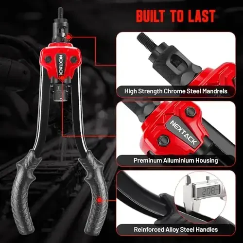 NEXTACK Rivet Nut Tool Kit (NT700) perchin gayka ilovalaringiz uchun keng qamrovli va ishonchli yechimdir. Ushbu to'plam professional va DIY foydalanuvchilari uchun idealdir. Barcha qismlar yuqori sifatli materiallardan ishlab chiqarilgan va uzoq muddatli foydalanish uchun mo'ljallangan.