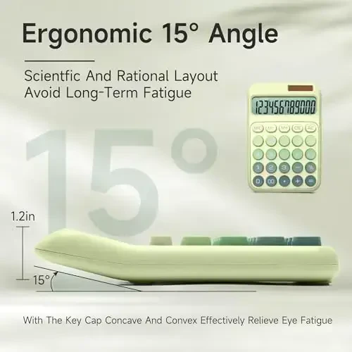 Meet the NGIFERA Desktop Calculator! This stylish and practical calculator stands out with both its aesthetic appearance and advanced features. Thanks to its 12-digit wide LCD screen, you can easily follow even complex calculations. Large and ergonomic keys provide a satisfying experience with every press, while the mechanical keyboard-like design provides fast and accurate responses. Adding vibrancy to your workspace with its Ombre Green color, this calculator is not just a tool, but also a style statement. Whether you use it at home, school, office, or store, the NGIFERA calculator is designed to meet all your basic mathematical and financial needs. With functions such as independent memory, M+, M-, GT, delete (→), and percentage (%), you can easily perform complex operations and save time. It is made of ABS plastic material and offers a smooth and high-quality touch. Thanks to its non-slip base pads, it stays stable on the table and prevents slipping during use. Thanks to its dual power option, it can operate with both solar energy and battery. It offers environmentally friendly use by maximizing solar energy. It automatically turns off after 10 minutes of inactivity, saving energy. The NGIFERA Desktop Calculator is not just a calculator, but also an assistant that simplifies your daily life. It is an ideal choice for both adults and students. Now make your calculations more enjoyable and efficient with NGIFERA!