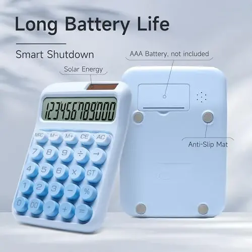 Представляем вам настольный калькулятор NGIFERA! Этот стильный и эстетичный настольный калькулятор — функциональный и привлекательный помощник благодаря современному дизайну и расширенным функциям. Цвет Ombre Blue придает вашему рабочему пространству живость, а превосходная производительность позволяет с легкостью выполнять все расчеты. Настольный калькулятор NGIFERA обеспечивает уникальные ощущения благодаря клавишам, имитирующим механическую клавиатуру. Клавиши реагируют быстро и точно, обеспечивая приятные ощущения при каждом нажатии. Большие клавиши и четкий звук щелчка делают ваши расчеты более приятными. Этот портативный калькулятор идеально подходит для дома, школы, офиса и магазина, легко выполняет основные математические операции и финансовые функции. Это отличный выбор как для взрослых, так и для студентов. Изготовленный из прочного АБС-пластика, настольный калькулятор NGIFERA обеспечивает гладкость и ощущение премиум-качества. Он разработан для комфортного использования и включает в себя множество функций, таких как автоматическое отключение, независимая память (M+, M-), общая сумма (GT), удаление (→) и процент (%). Благодаря нескользящим подушечкам он обеспечивает стабильное и безопасное использование на столе. Настольный калькулятор NGIFERA предлагает два варианта питания: от солнечной энергии и от аккумулятора. Он обеспечивает экологически чистое использование, максимально используя солнечную энергию. Он автоматически выключается через 10 минут, когда не используется, экономя энергию. Обратите внимание: батарейки в комплект не входят. Как NGIFERA, мы уверены в качестве нашей продукции и предлагаем вам 24-месячную техническую поддержку. Если вы не удовлетворены нашей продукцией, свяжитесь с нами. Наша команда свяжется с вами в течение 24 часов. Сделайте свои расчеты эффективными и приятными с помощью настольного калькулятора NGIFERA!