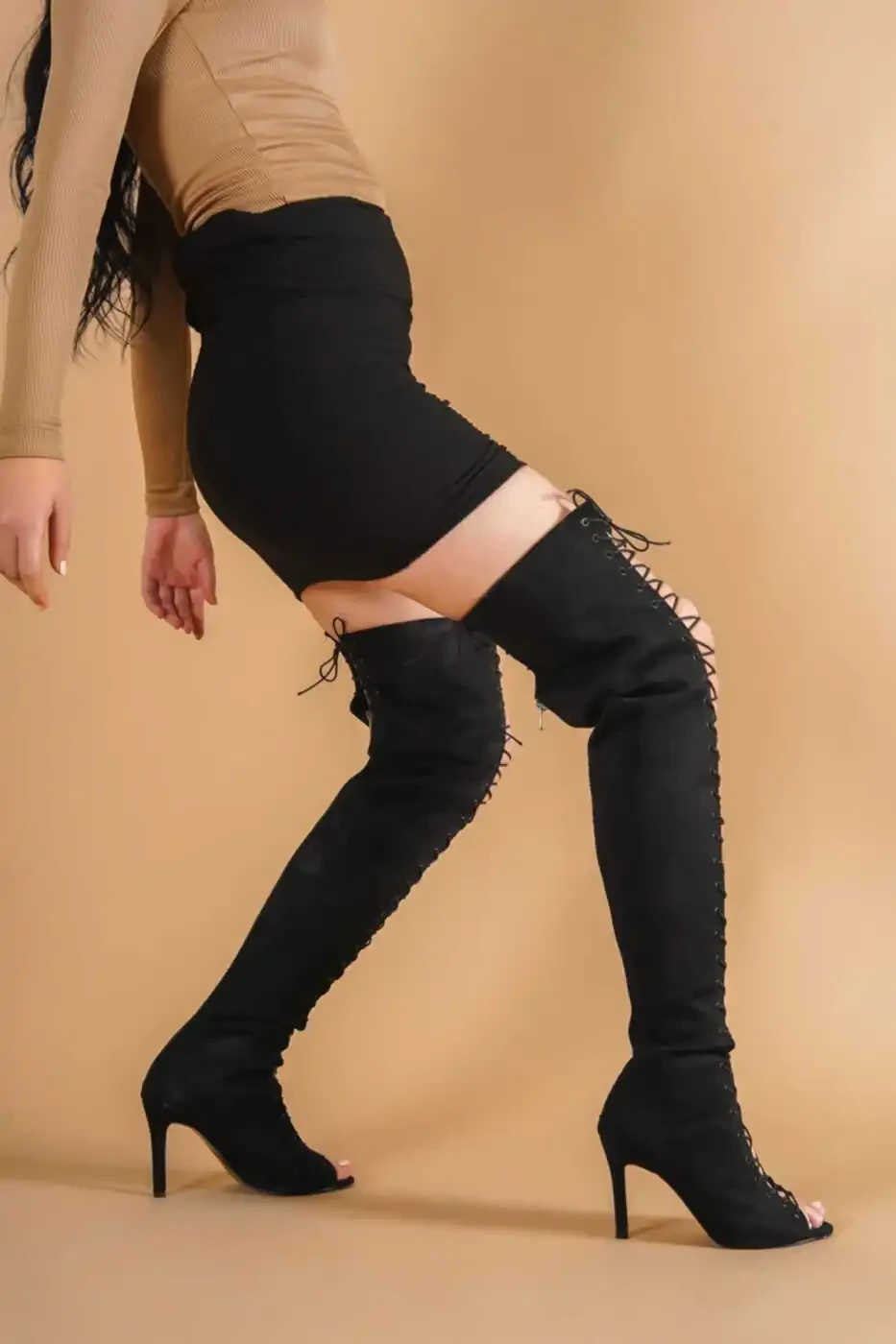 Black Suede Heeled Design Lacing Women's Shoe Nicole will add a touch of luxury and style to your feet. Order now and complete your style!