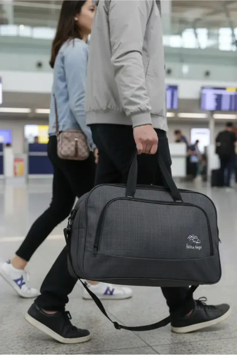 Sayohat sumkasi, sochiqli mato sumkasi, unisex sumka, kabin o'lchamli chamadon, ko'p cho'ntakli sumka, sport sumkasi, kasalxona sumkasi, styuardessa chamadani, qo'l yelka sumkasi, tutun rangli sumka