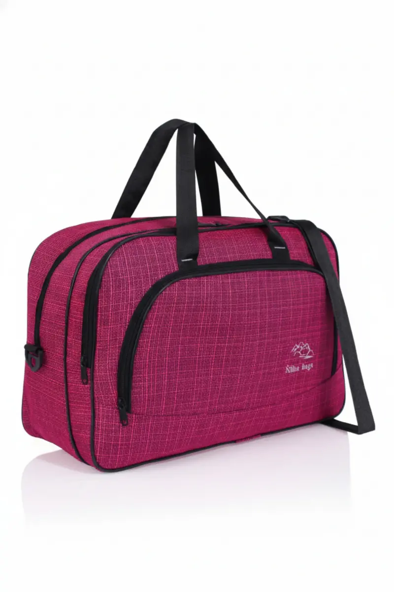 Nil-01 Unısex Havlu Kumaş Hostes Valiz Seyahat Tatil Spor Hastane Çok Gözlü El Ve Omuz Çantası Kabin-PEMBE